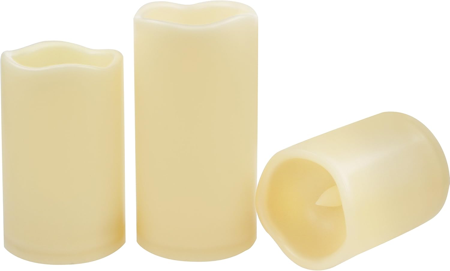- For outdoor and indoor use. The plastic battery candles are waterproof and designed for outdoor use to decorate your garden, yard, patio, swimming pool or an outdoor activity such as a BBQ party. Of course, the resin pillar candles can be used indoor as well. Used as decorative lights, flameless LED candles are as good as real candles. Flameless candles create a warm, peace, and romantic ambiance.