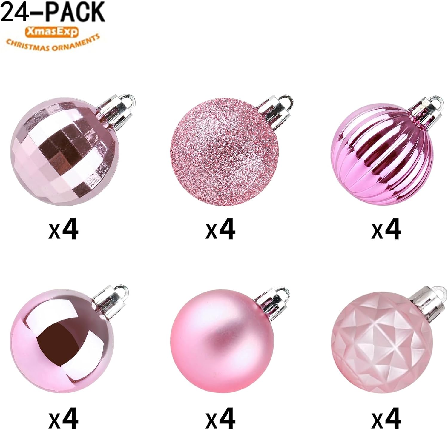 XmasExp 24ct Christmas Ball Ornaments Shatterproof Christmas Ornaments Set Decorations for Xmas Tree Balls 40mm/1.57” (1.57'', Pink)