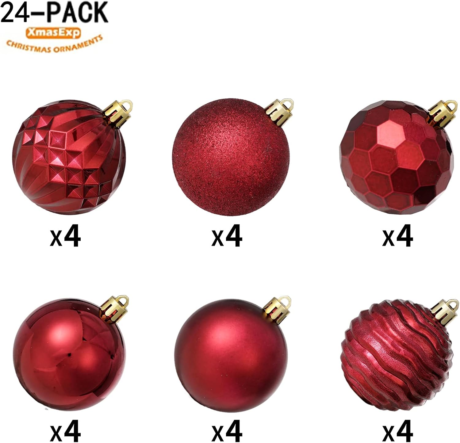 XmasExp 24ct Christmas Ball Ornaments Shatterproof Xmas Tree Hanging Balls Decorations Perfect for Holiday Wedding Christmas Decor(2.36"/60mm, Burgundy)