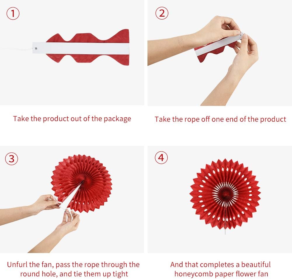 - Easy to assemble and uniquely designed: These hanging paper fans have a hanging string attached,just unfold the paper flower fan and fix it with the rope of the paper flower fan, then you can hang it to your favorite place and decorate your party perfectly in a few minutes.