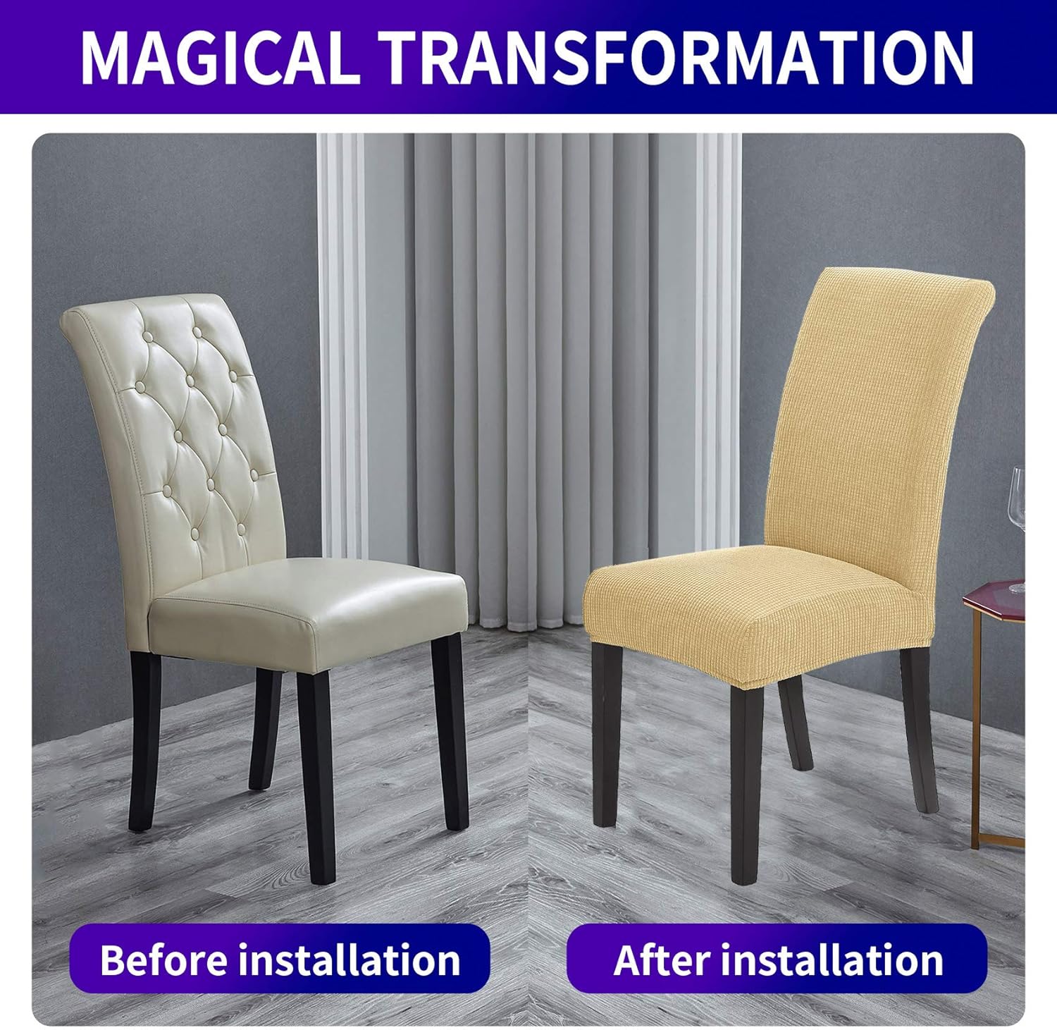 Howhic Stretch Chair Covers for Dining Room Set of 6, Removable Washable Dining Room Chair Covers, Dining Chair Slipcovers Seat Protector, Great Decoration for Home and Banquet (Champagne, 6 Pack)