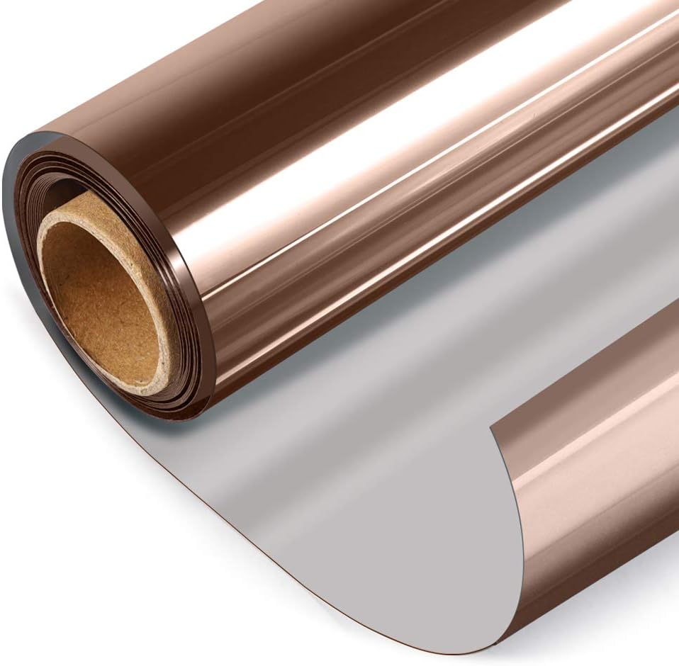 HIDBEA One Way Mirror Window Film, Daytime Privacy Sun Blocking Reflective Window Film Static Cling Heat Control Window Tinting Film for Home and Office, Brown Silver, 17.5 x 78.7 Inch