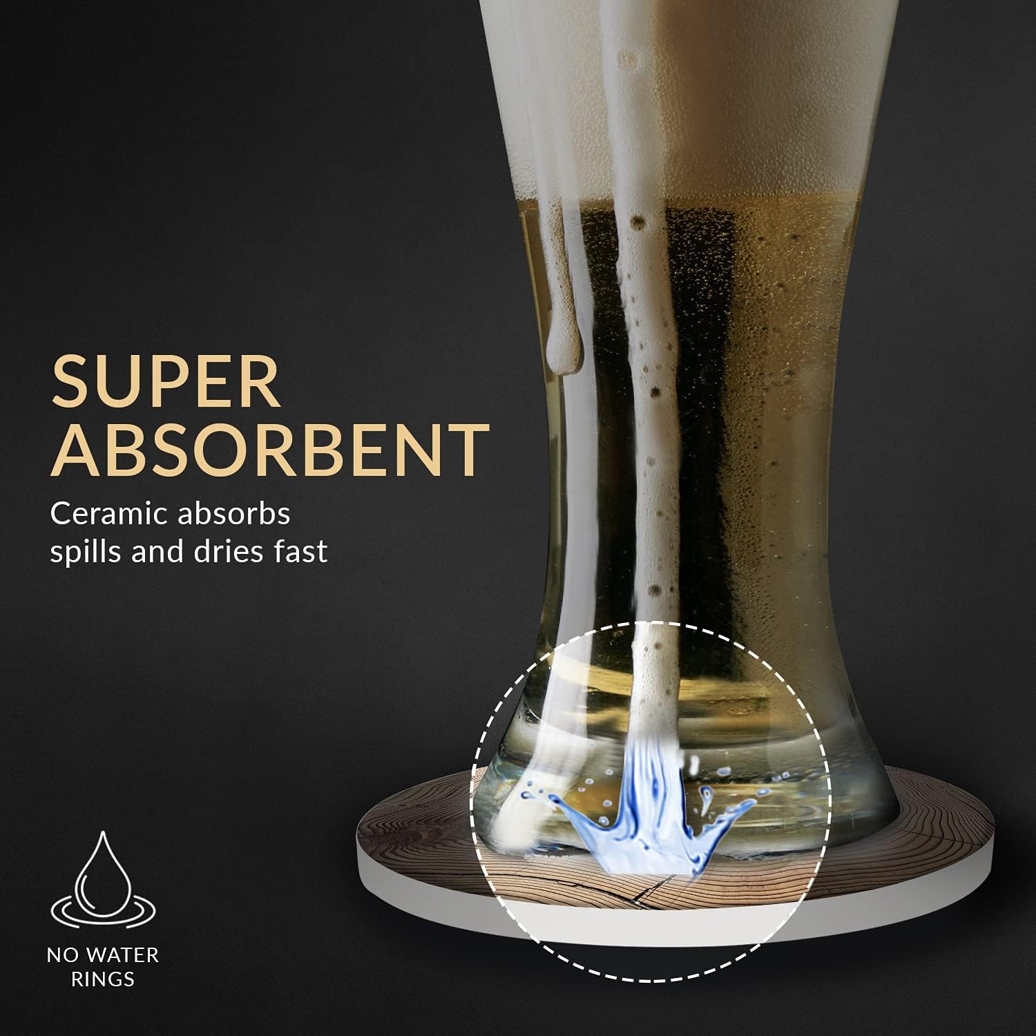 Emerson Coasters for Drinks Absorbent – Natural Stone Drink Coasters Set with Holder, Coasters for Coffee Table, Wooden Tabletop Protection Marble Style – 100% Heavy Duty Set of 6 (Wood)