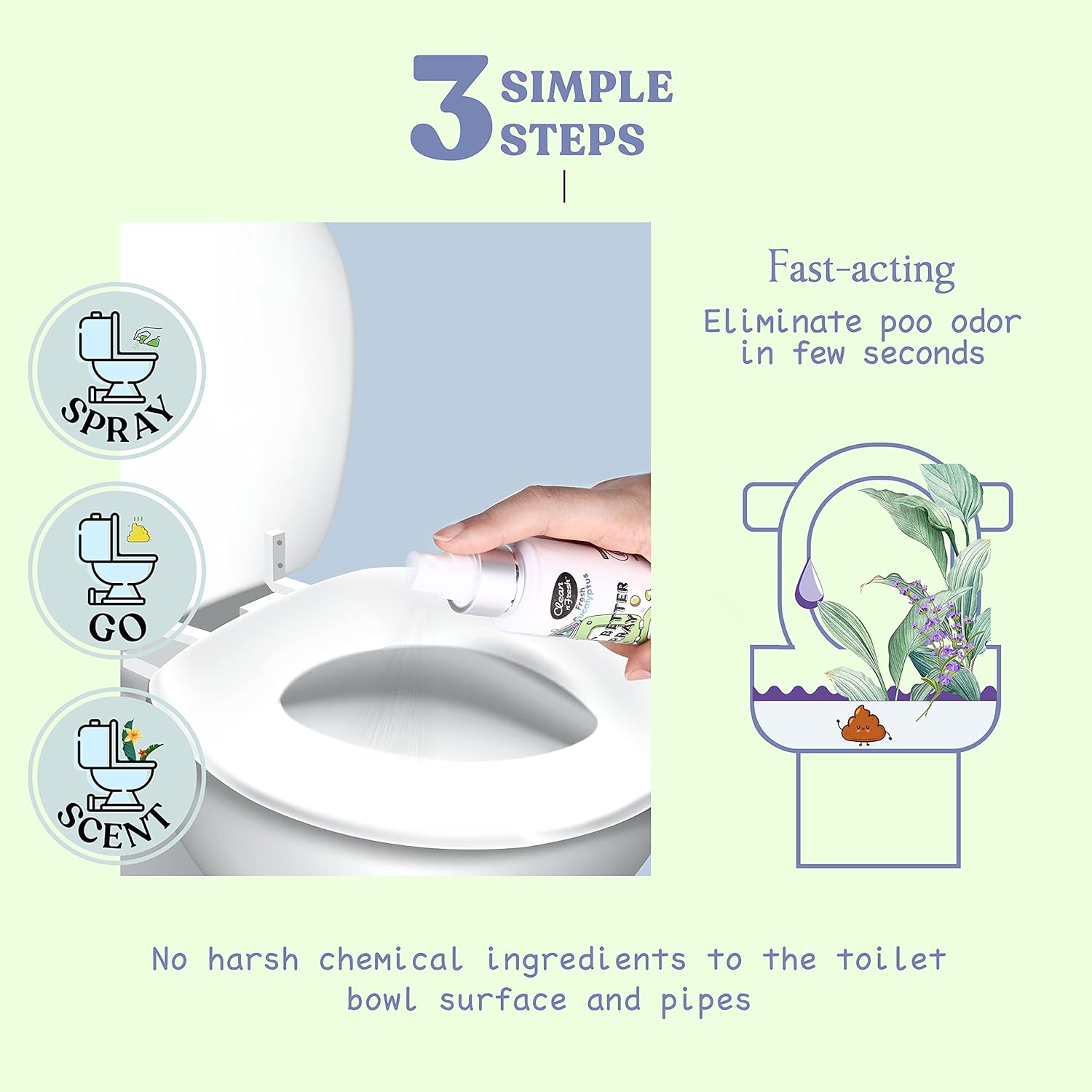 • PLANT BASED FORMULA: No Synthetic Fragrance, No Parabens, No Phthalates, No Aerosol, No Formadehyde and Cruelty Free. It isolate and neutralize the odor of poop in few seconds, Just spritz 2~4 sprays before go to the toilet