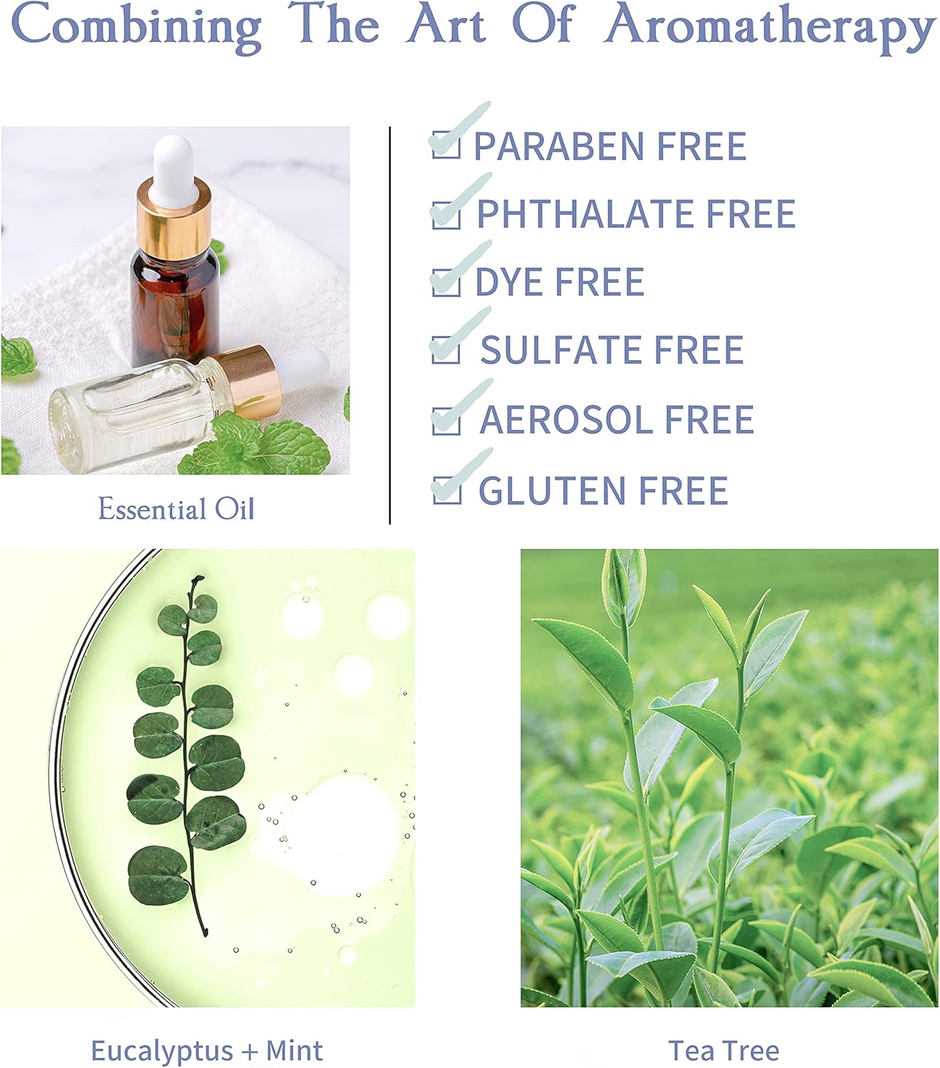 • NATURAL PLANT ESSENTIAL OIL: Pure essential oil of eucalyptus, mint and tea tree extracted from plants, the wooden smell can put you in a good mood