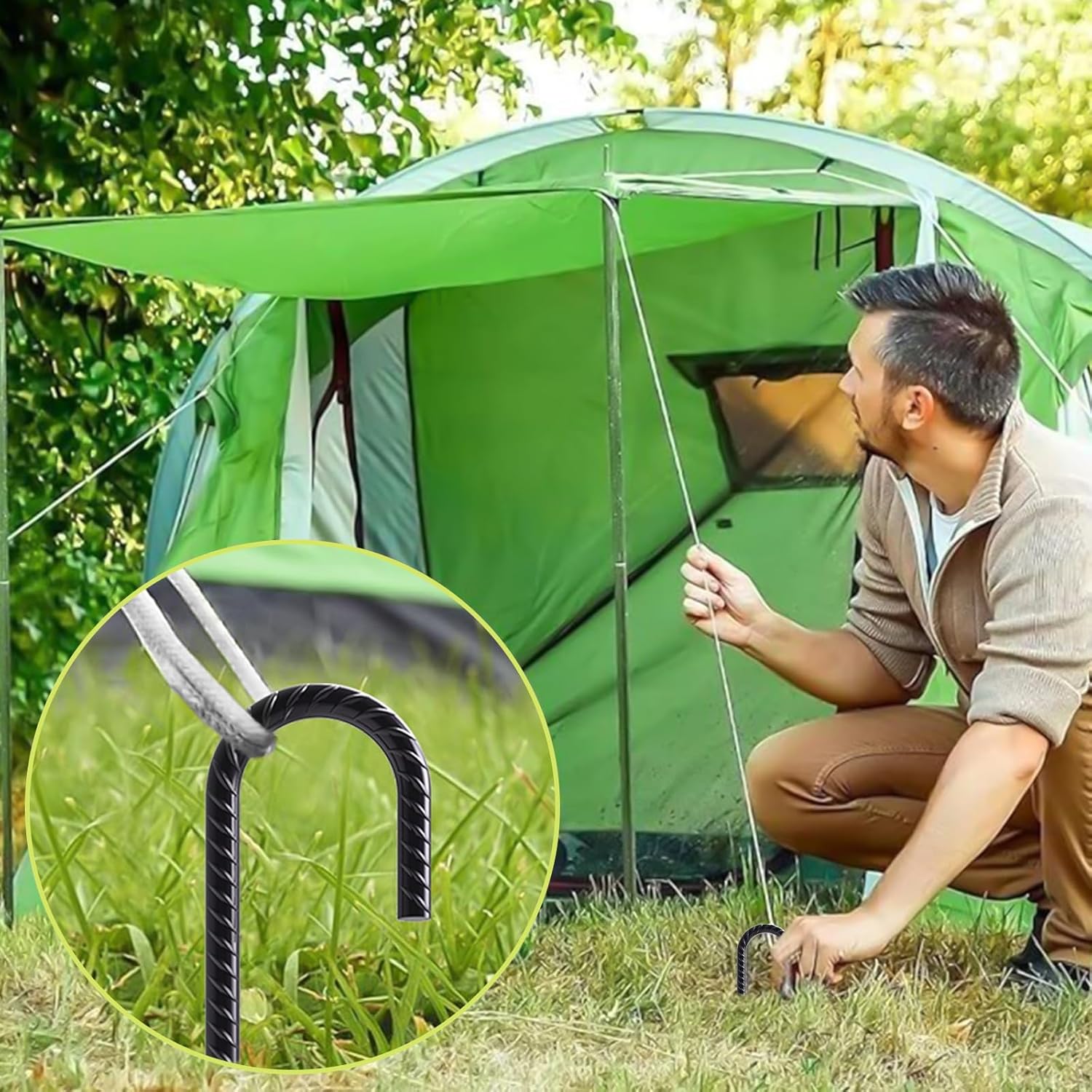 - GROUND STAKES - Extra heavy duty ground anchors. made of weather resistant heavy duty steel rebar with black powder coated to prevent efficiently being oxidized, reliable and long-lasting in outdoor use and strong enough to fight the high wind.