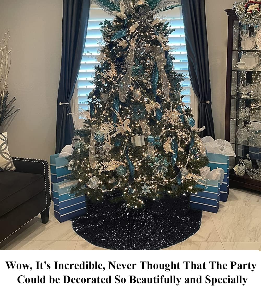 Partisout 48 Inch Black Sequin Christmas Tree Skirt - Glitter Holiday Decor for Xmas, Halloween, Winter Parties