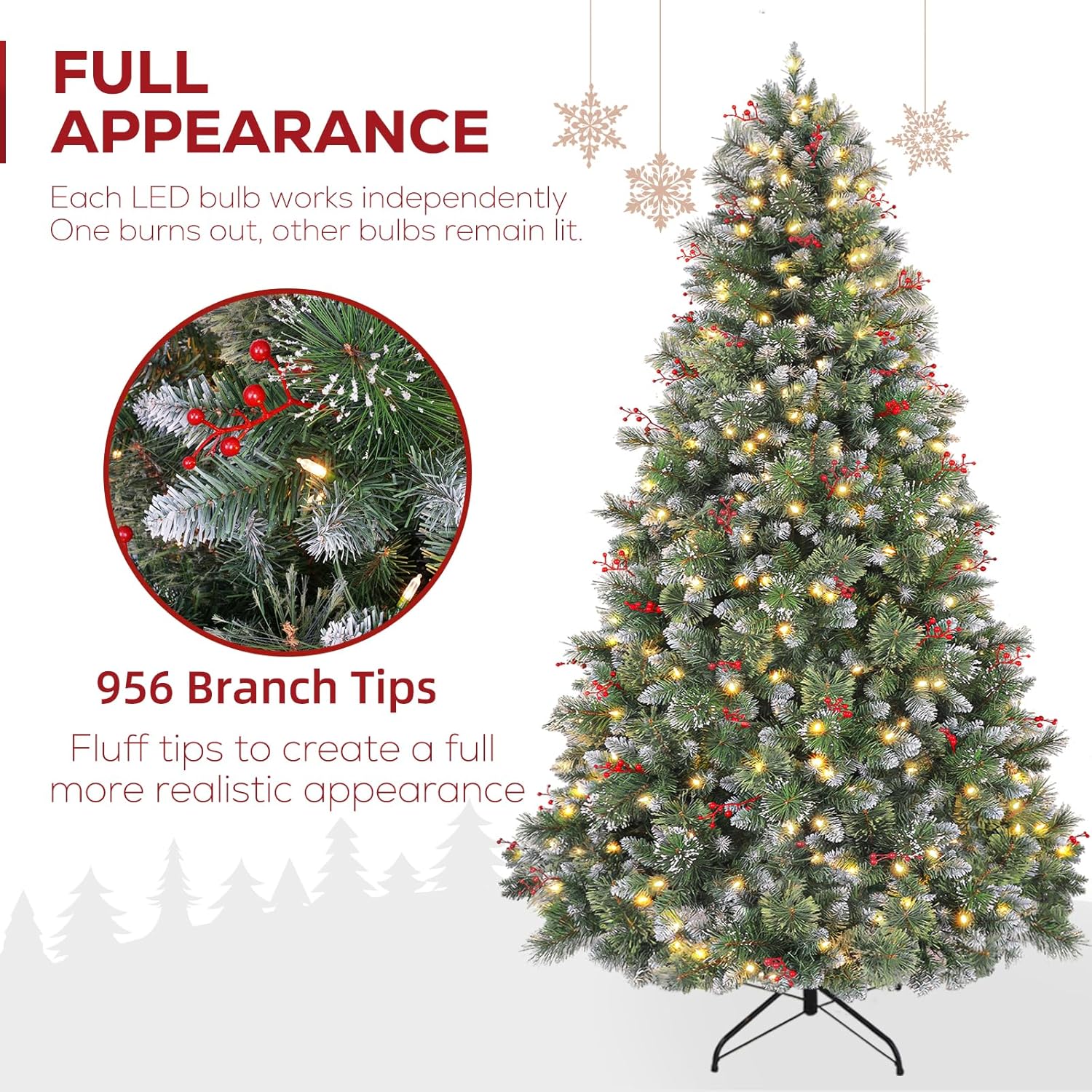 - Natural & Lush Look:โโ Experience a luxuriously full 6ft Christmas tree adorned with 956 PVC branch tips and realistic red berries. Snow-dusted pine needles create an enchanting wintry charm, while hassle-free assembly and ample decoration space ensure effortless elegance.