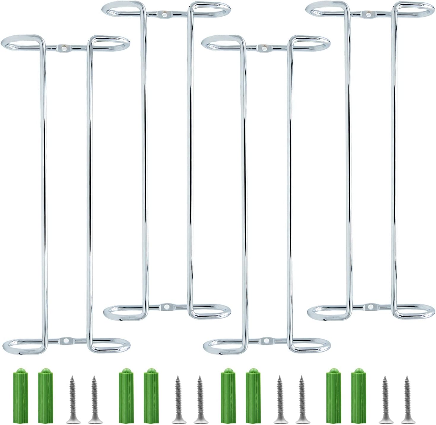 10 Inch Wine Glass Rack Under Cabinet Shelf Stemware Storage Hanging Hanger Organizer Glasses Holder with Drying Under Counter Metal for Kitchen and Bar Set of 4 Silver
