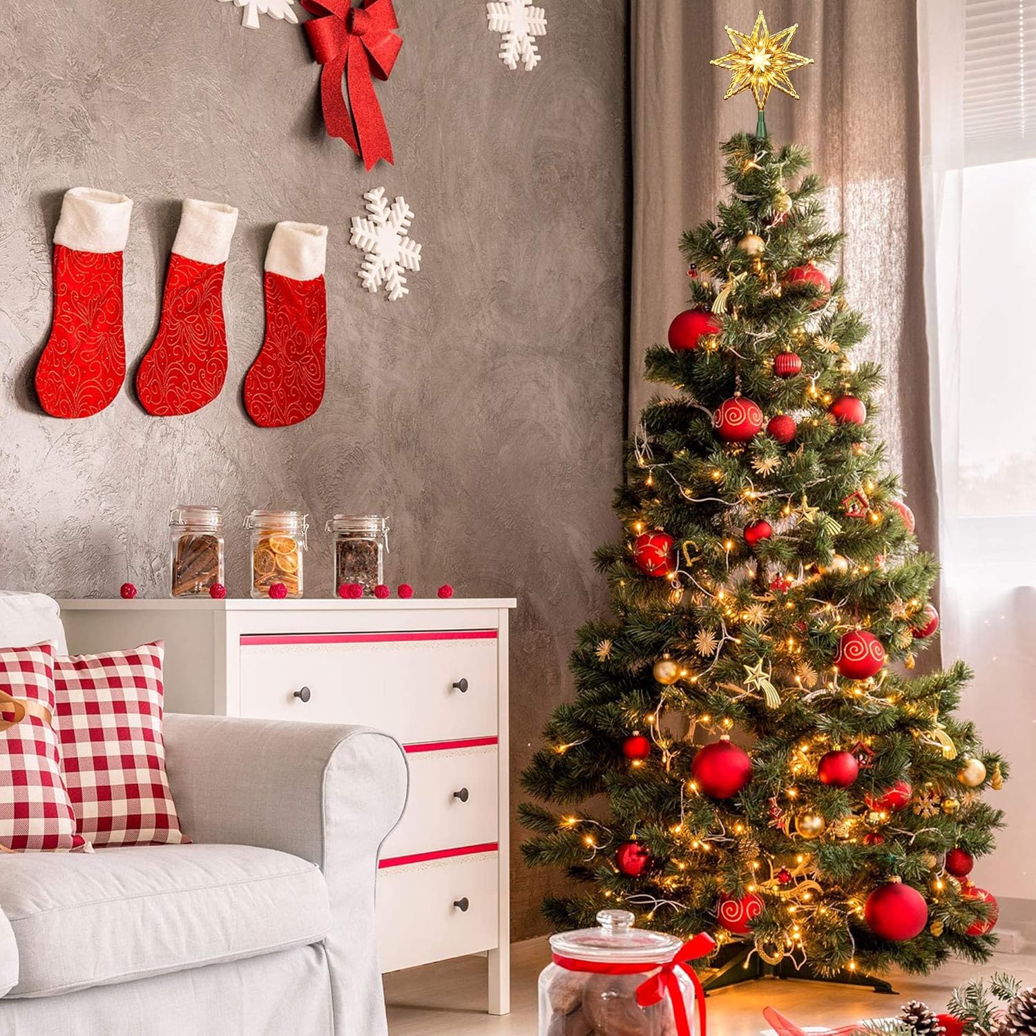 - Beautiful Warm White Lighting: 10 count warm white glowing incandescent lights entwined with star, the Christmas star topper glitters under the lights, beautiful and eye-catching, creating a classic warm and romantic Christmas atmosphere, making your Christmas tree more attractive.