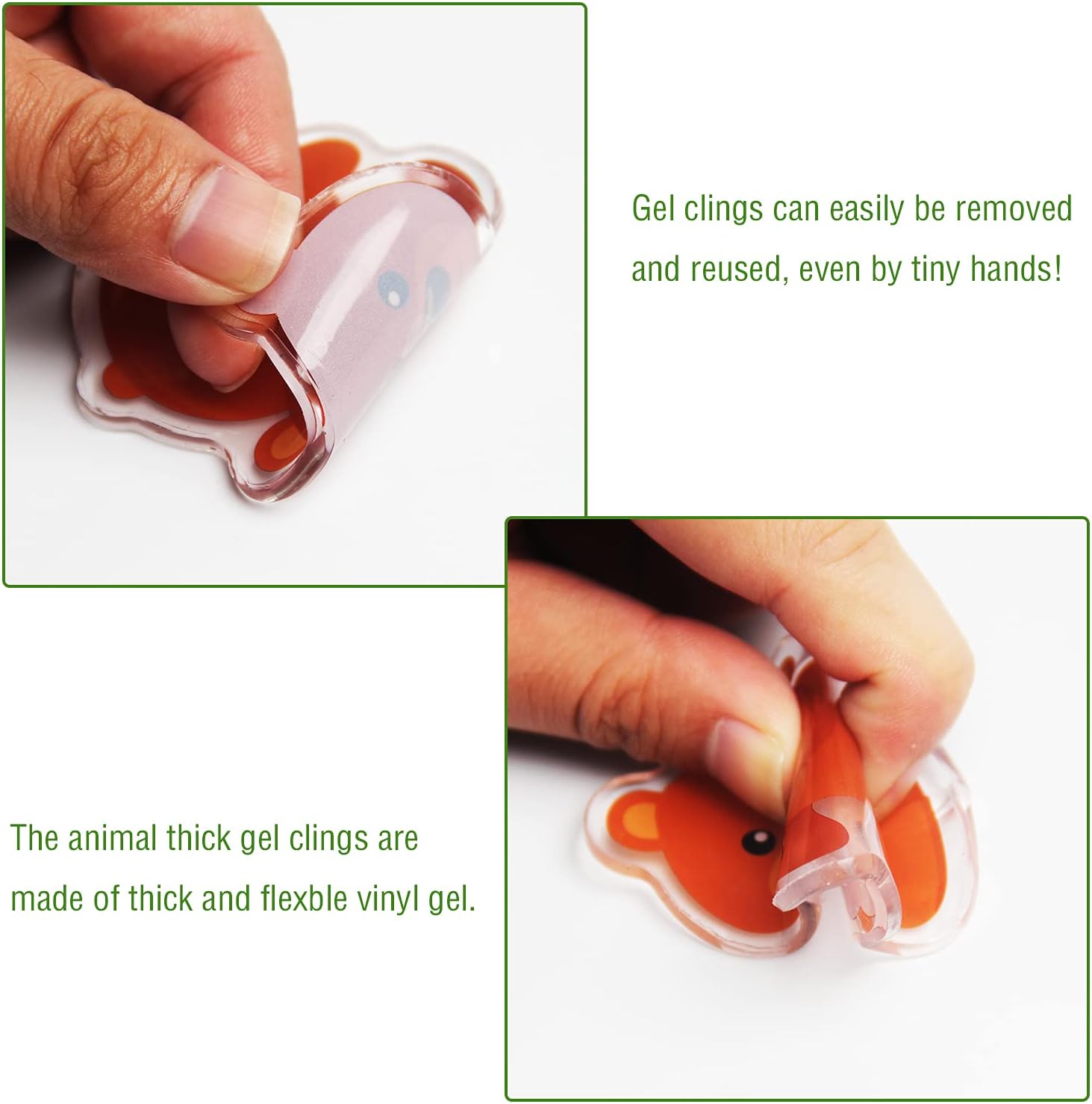 - Removable and reusable: the safari thick gel window clings are vinyl gel clings which can easily be removed and applied for a long time, even by tiny hands, you can remove these thick gel clings anytime and reuse them year after year, they don't leave any residue on the glass