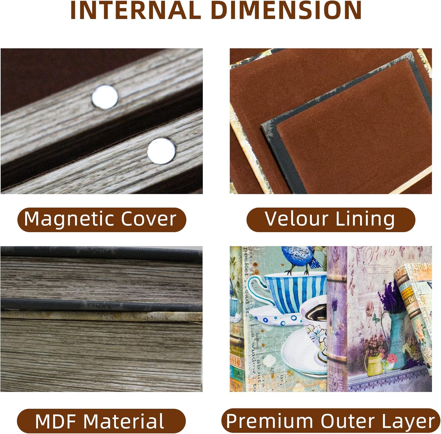 - The inside of this book box has a delicate plush lining and comes in three sizes, ideal for storing items of different sizes, such as jewelry, glasses, Christmas Gift Cards,photos, letters, etc