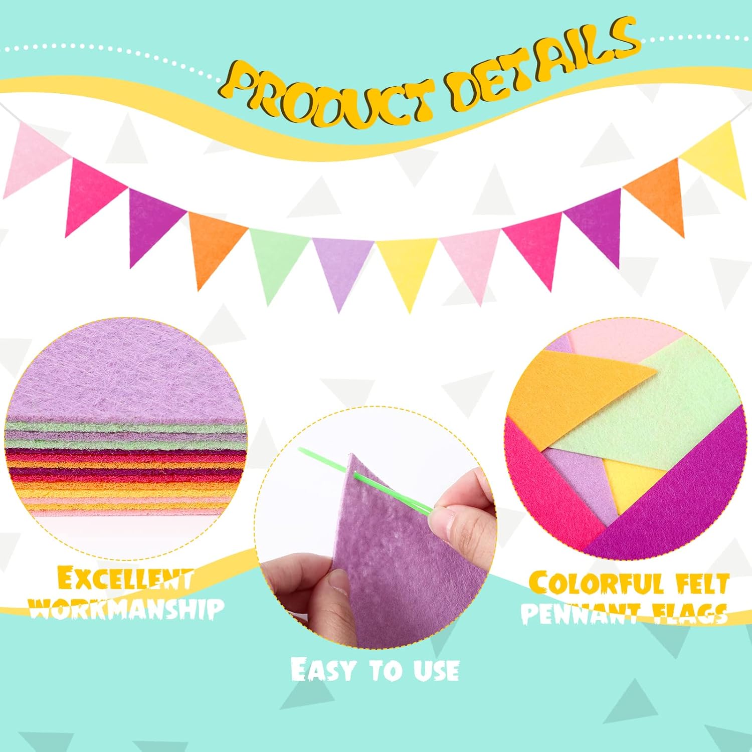 - Soft material: the tassel garland is made of quality thread which has soft and smooth tactility, these felt pennant flags are made of felt fabric (non-woven fabric), which are not easy to break so that you can keep them for a long time; These felt balls are made of wool fiber and are fully hand-felted, soft and comfortable that won't hurt your hand