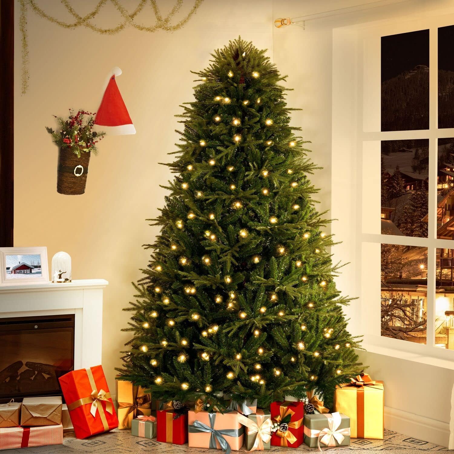 - WARM LIGHTS TO BRING MORE JOY : The Hinged fake Christmas Tree comes Pre-lit with 400 incandescent lights that make setting up your tree a breeze. These lights emit a warm glow that highlights your decorations and holiday gifts making your place extra-special. The included foot pedal allows easy control of the lights on the Christmas Tree. Naomi Home Christmas Trees with Lights always stand for trust and quality.