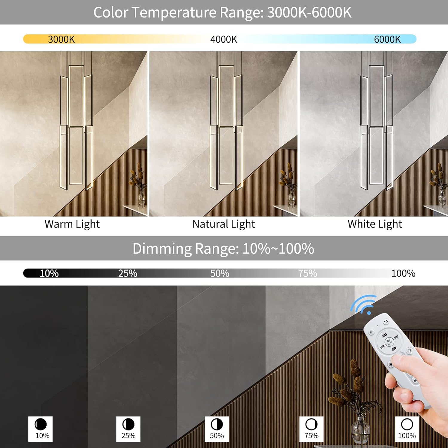 - [ LED Chandelier Applicable scene ]: Rectangular High Ceiling Chandelier Very suitable for modern home design Adjustable Black Chandelier can be DIY to various shapes easily by adjusting the cables Hanging Modern Ceiling Light with remote Suitable for Foyer, Staircase, Hallway, Kitchen Island, Craft Room, Hotel, Villa, Large living room with high ceiling Etc.