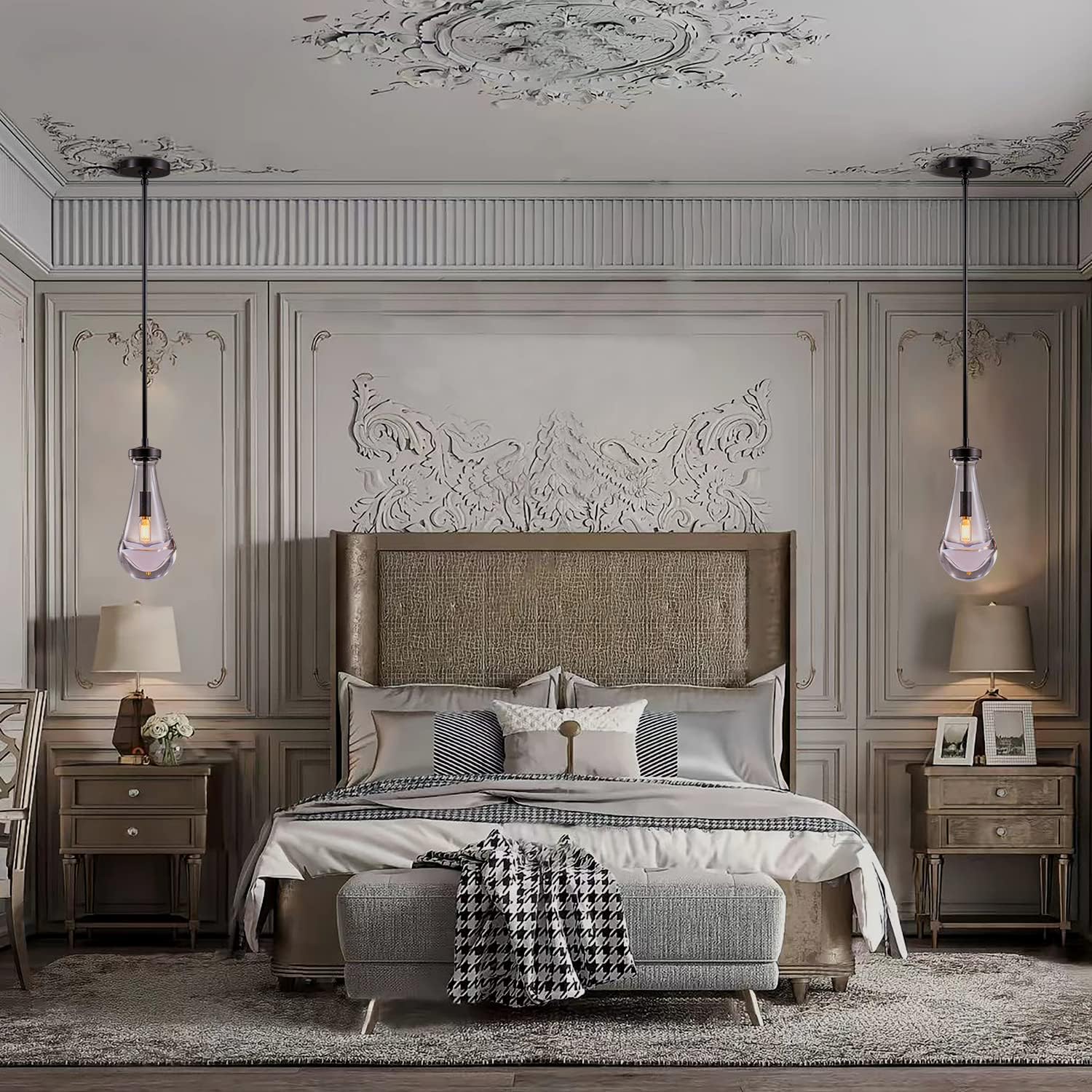 - 【Hand-blown Raindrop Pendant Light】The raindrop-shaped glass shade reflects a rich light effect in the light, combining the beauty of modernity and nature to enhance the premium feel of the space, this pendant light is suitable for all styles of decoration.