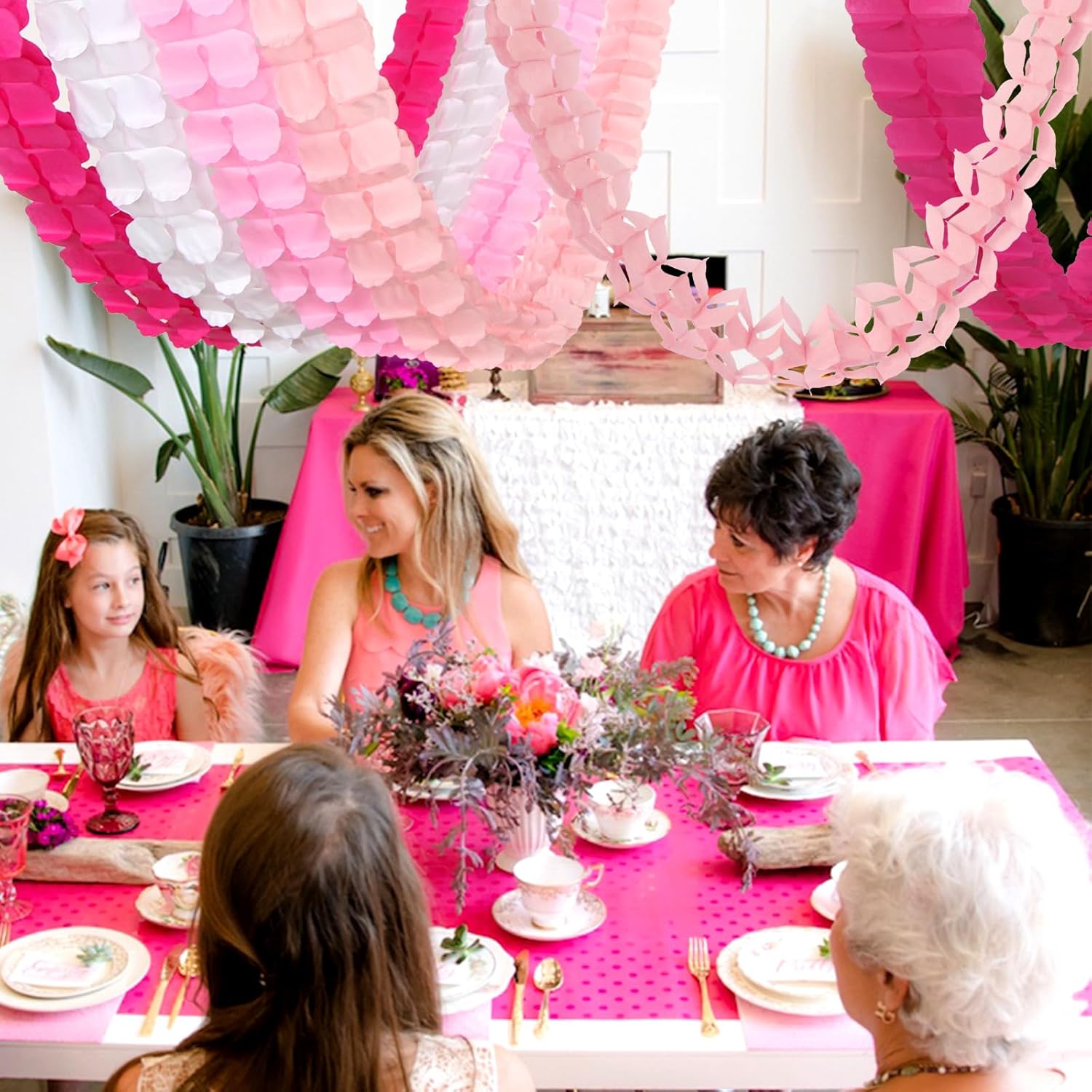 Rose-Red Pink-White Party-Decorations Streamers Garland - 157Ft Four-Leaf Clover Hanging Banner,Wedding Girl Birthday Baby Bridal Shower Engagement Bachelorette Decor Hugtmr