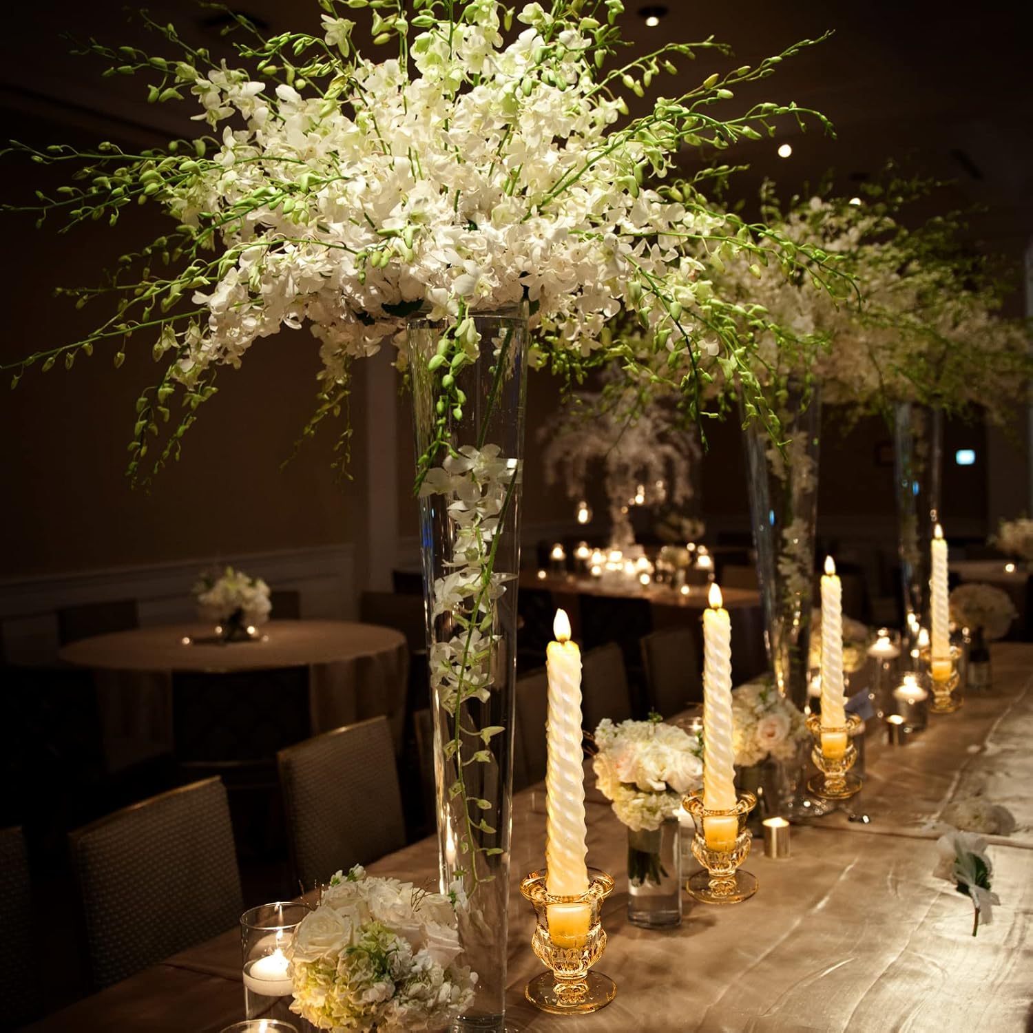 - Elegant Design: these taper candlestick holders come with a vase shape design, designed in transparent gold color, modern and delicate, simple but elegant, which can be matched with rooms in different decoration styles, the grain of candle cup bottom makes whole candle holders look more stereoscopic, and the round base provides solid support for the small candlestick holder, stable and safe for your use