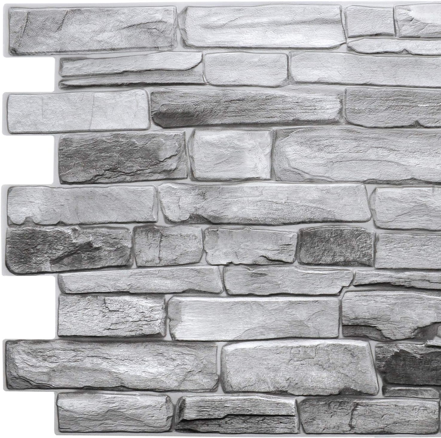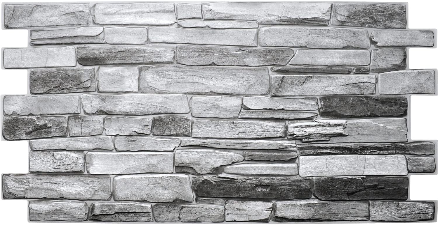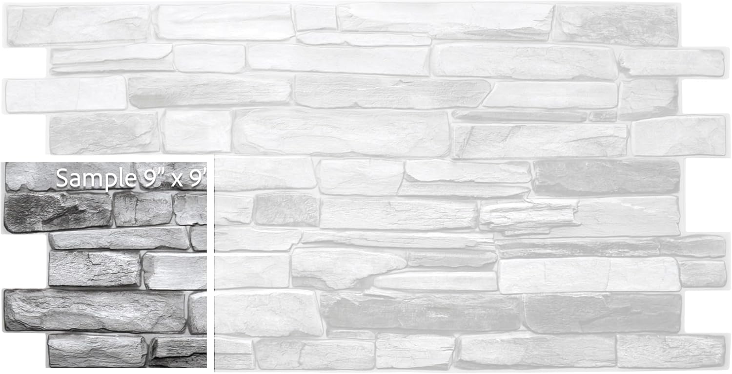 Dundee Deco Grey Faux Stone PVC 3D Wall Panel, 3.2 ft X 1.6 ft (98cm X 50cm), Interior Design Wall Paneling Decor, Sample 9 in X 9 in