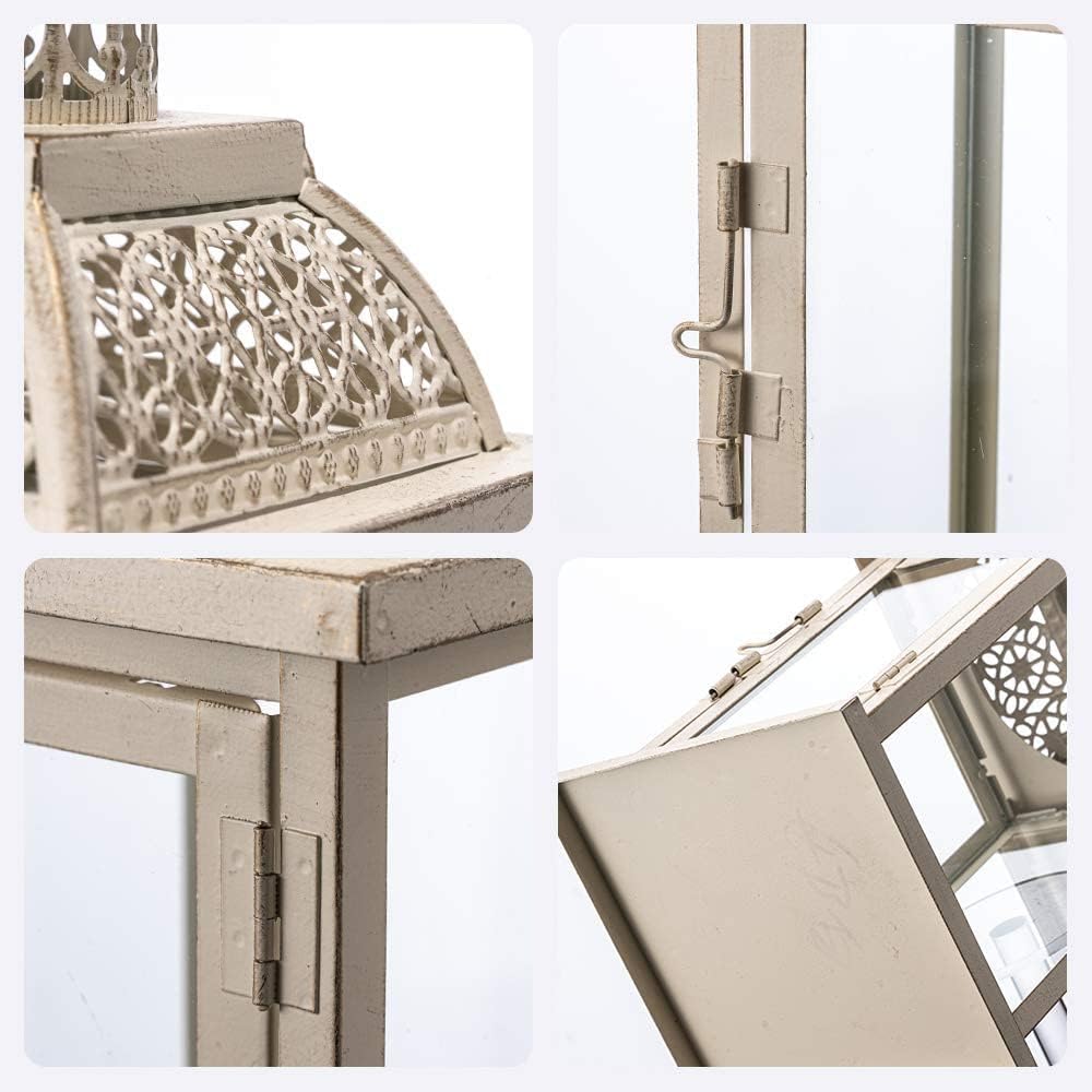 - CONSUMMATE WORKMANSHIP - The scrollwork is meticulously polished and hand-painted, making each piece individually yours, this piece will add classic beauty and lends a touch of worldly flair to any setting. This candle lantern features beautiful floral cut-out detailing and a charming hexagonal/quadrangular frame. Just add a tealight candle or flameless LED and this piece radiates light through tempered glass for a calming glow. Perfect gift for Thanksging.