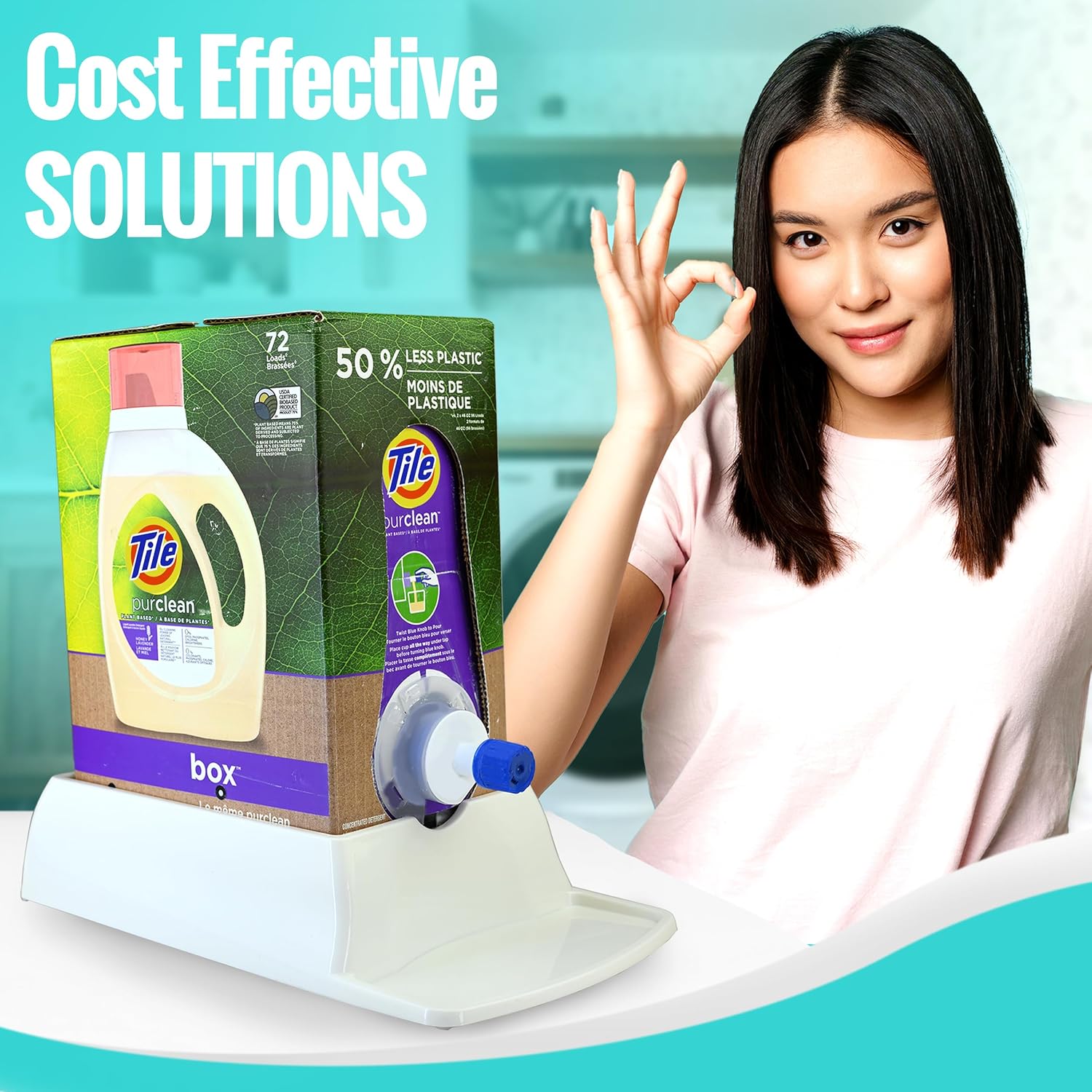 - Patent Pending Solution - The Skywin Boxed Detergent Stand is a practical and innovative product designed to enhance the usability and convenience of detergent boxes.Our Skywin Laundry Detergent Holder for Eco-Box Soap is designed with a liquid detergent dispenser and a detergent holder for the laundry room, using 75% less plastic for the environmentally-aware consumer