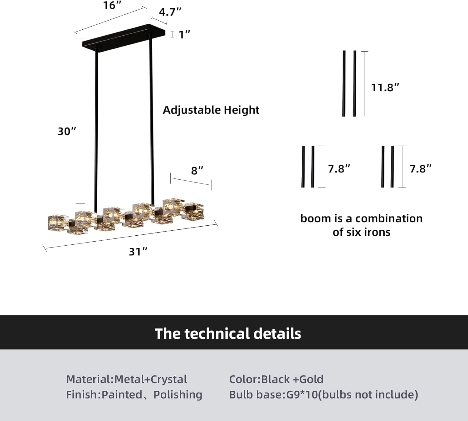 - 【Height Adjustable and Size 】The dining room light fixture is designed can be adjustable height,you can hang it high or low,six different length of the rods can combine the height to well fit for your house,Size:31.5*8.27*30.71inch