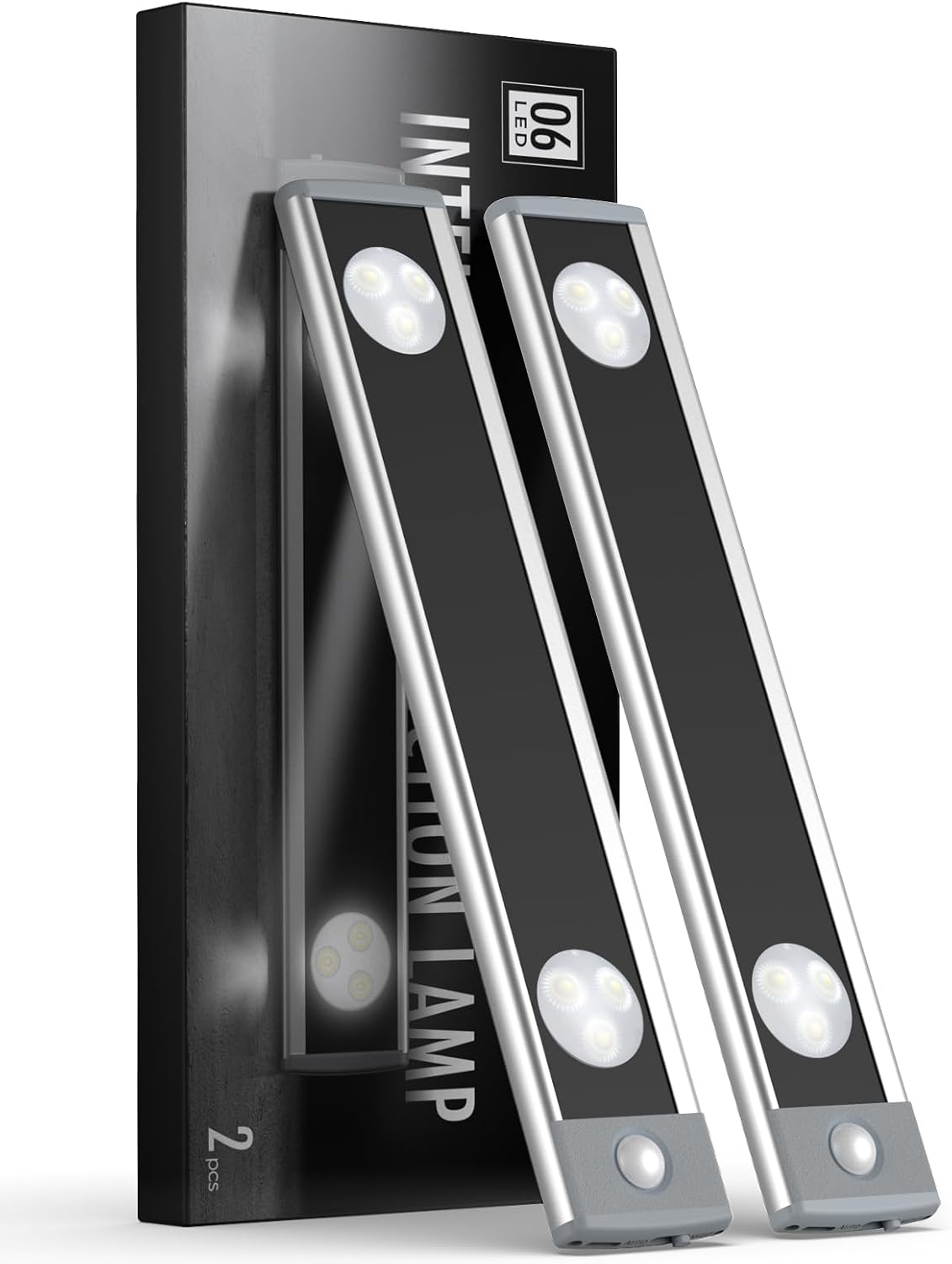 Under Cabinet Lights, Wireless Motion Sensor Light Indoor,10in LED White Lighting Rechargeable Battery Operated,4 Modes Night Light, Stick-On Magnetic Closet Lights for Kitchen, Hallway(2 Pack)