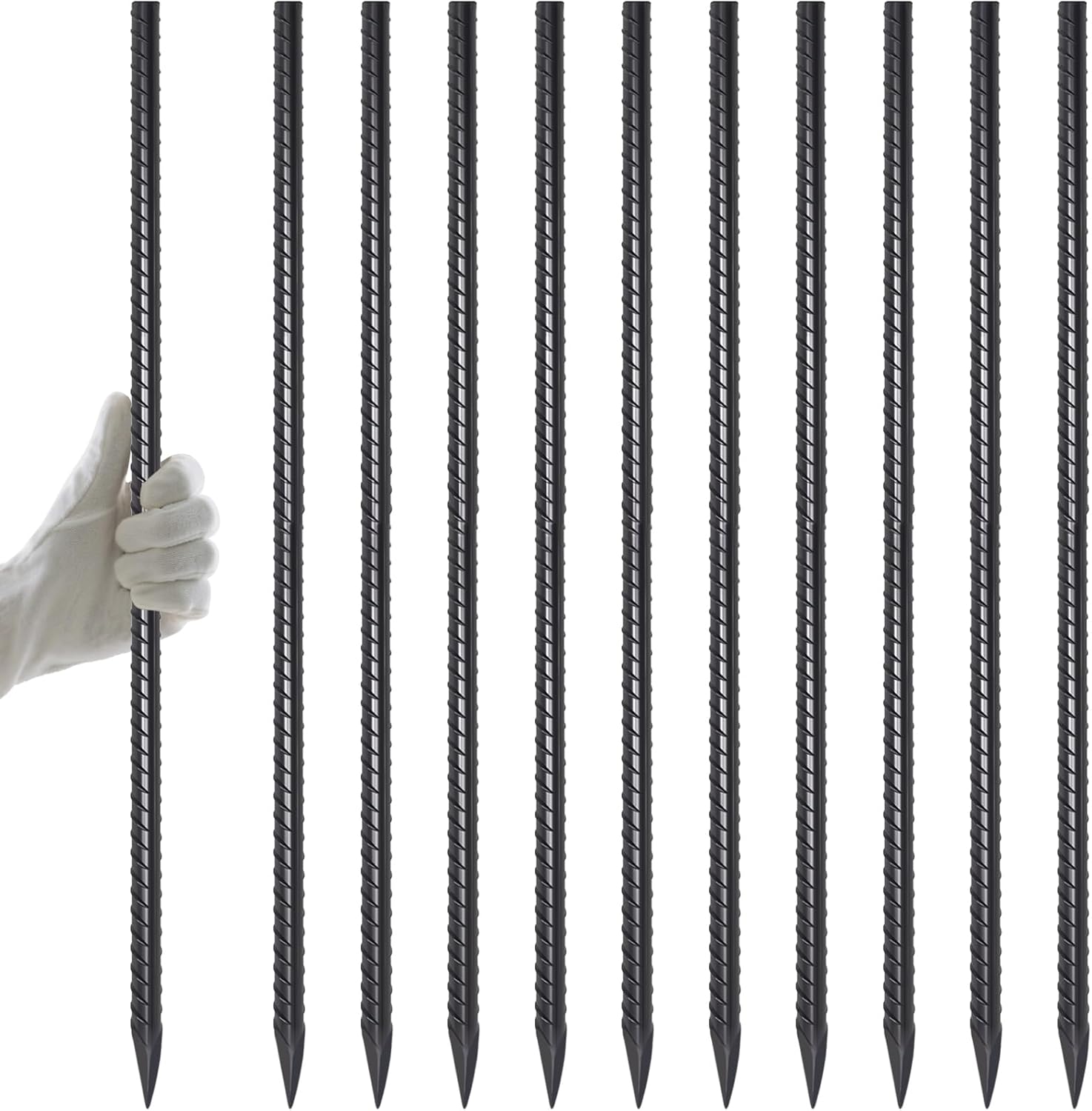 AAGUT Rebar Stakes 24 Inch 10 Pcs Landscape Timber Spikes 1/2", Heavy Duty Straight Garden Plant Stakes for Concrete Forming, Ground Anchors with Chisel Point End, Black