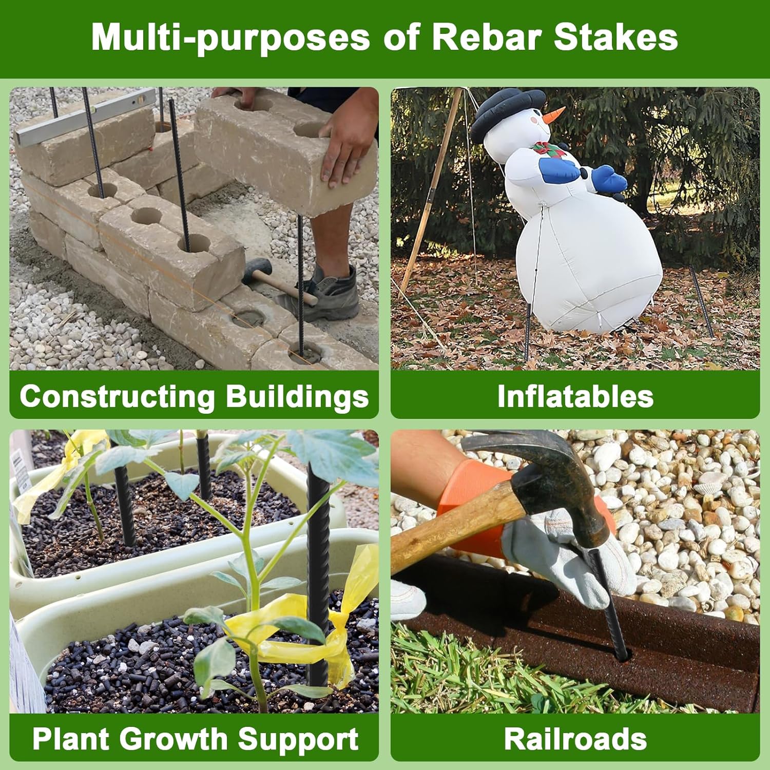 - NOTICE - The surface of some rebar stakes may have a rusty appearance, but there is no indication of corrosion. The rebar stakes will maintain its structural integrity and remain durable. Before opening and handling the box, it's recommended to wear gloves. If you are not satisfied with our straight rebar stakes, please contact us freely. We will provide you with a solution as soon as possible.