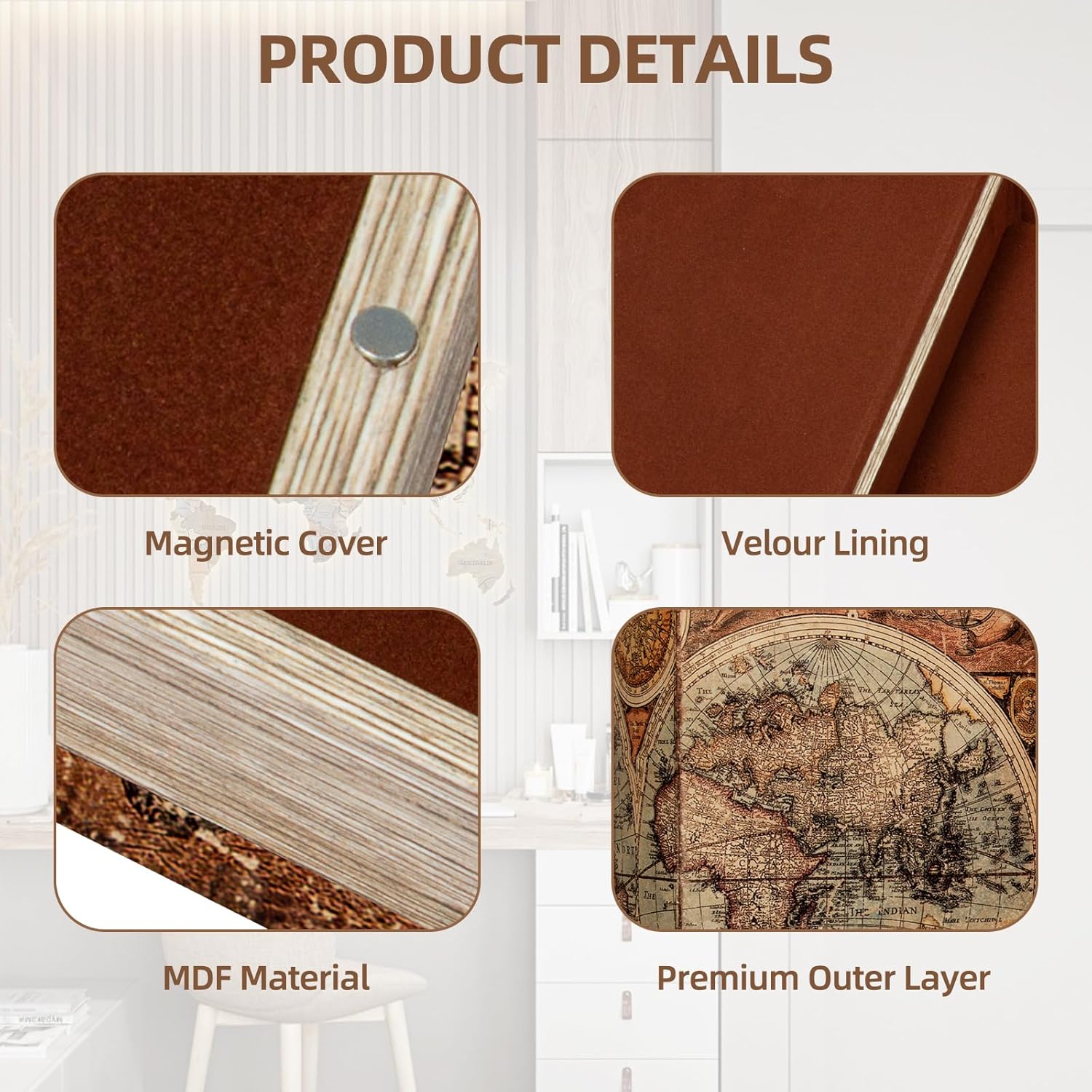 - Luxurious Design with Magnetic Closure Crafted from durable MDF and lined with soft velvet, this decorative storage box features a seamless magnetic closure—no keys needed for easy access.