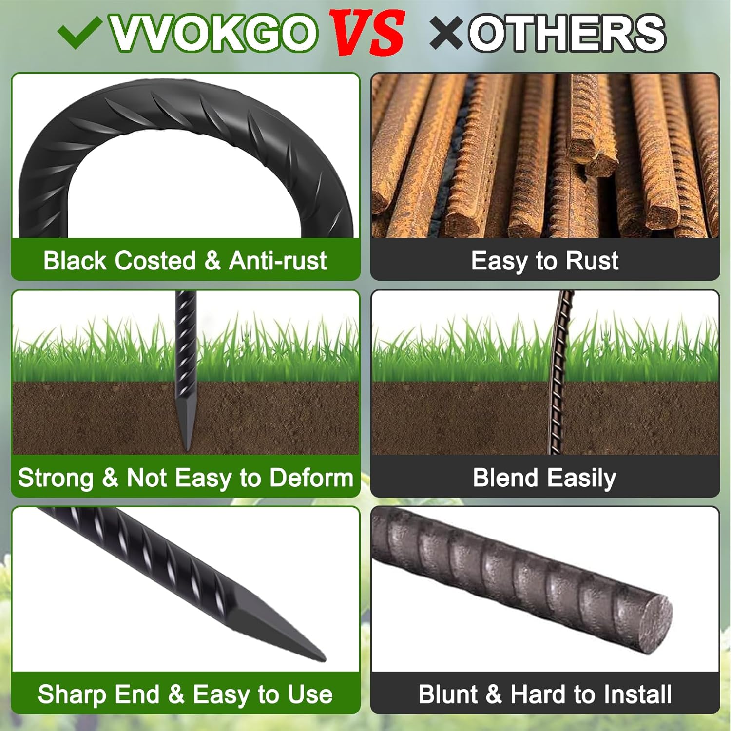 VVOKGO Trampoline Stakes 12 Inches Anchors High Wind Heavy Duty, 8-Pack U Shaped Tie Down Anchor Kit for Ground, Camping Tent, Soccer Net, Swing Set, Black