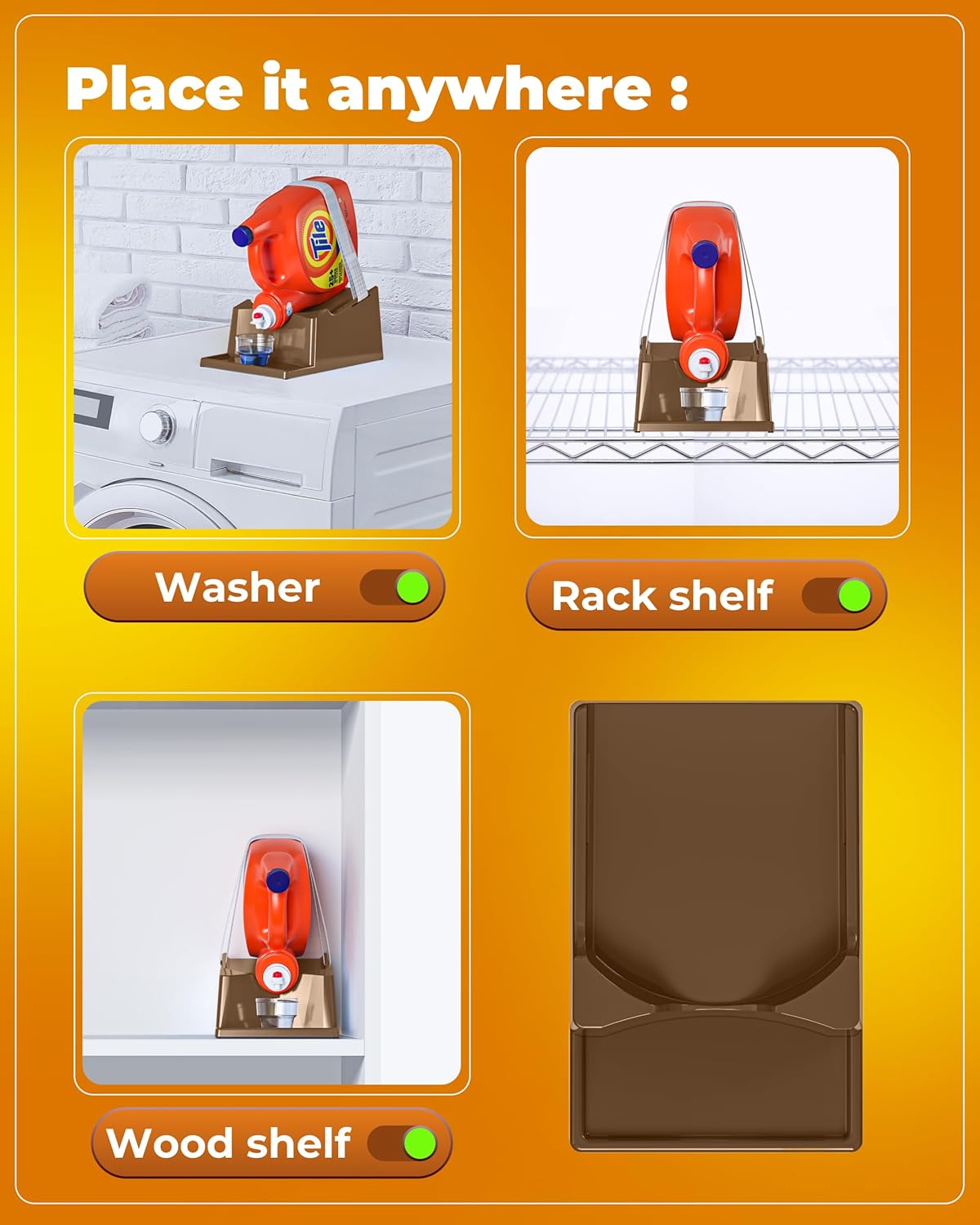- [Safe Attachment:] The laundry detergent shelf or holder features a secure strap that firmly attaches and ensures your detergent bottle stays in place and minimizing the risk of accidental falls and spills.