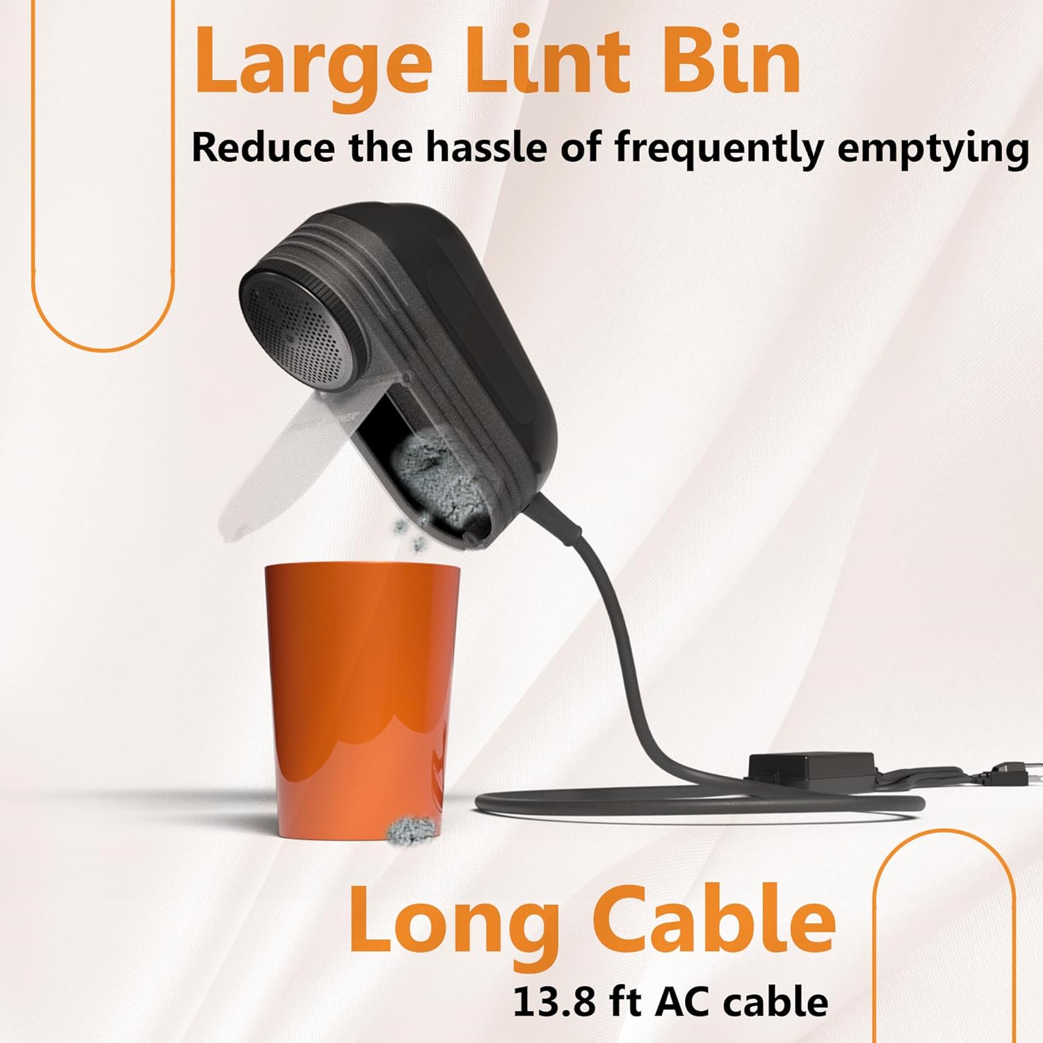 - Heavy Duty Fabric Shaver: Upgrade your mini clothes shaver lint remover to our bigger and stronger lint remover shaver! It features extra power, extra large bin, and an extra long cable to satisfy any fabric-shaving needs.