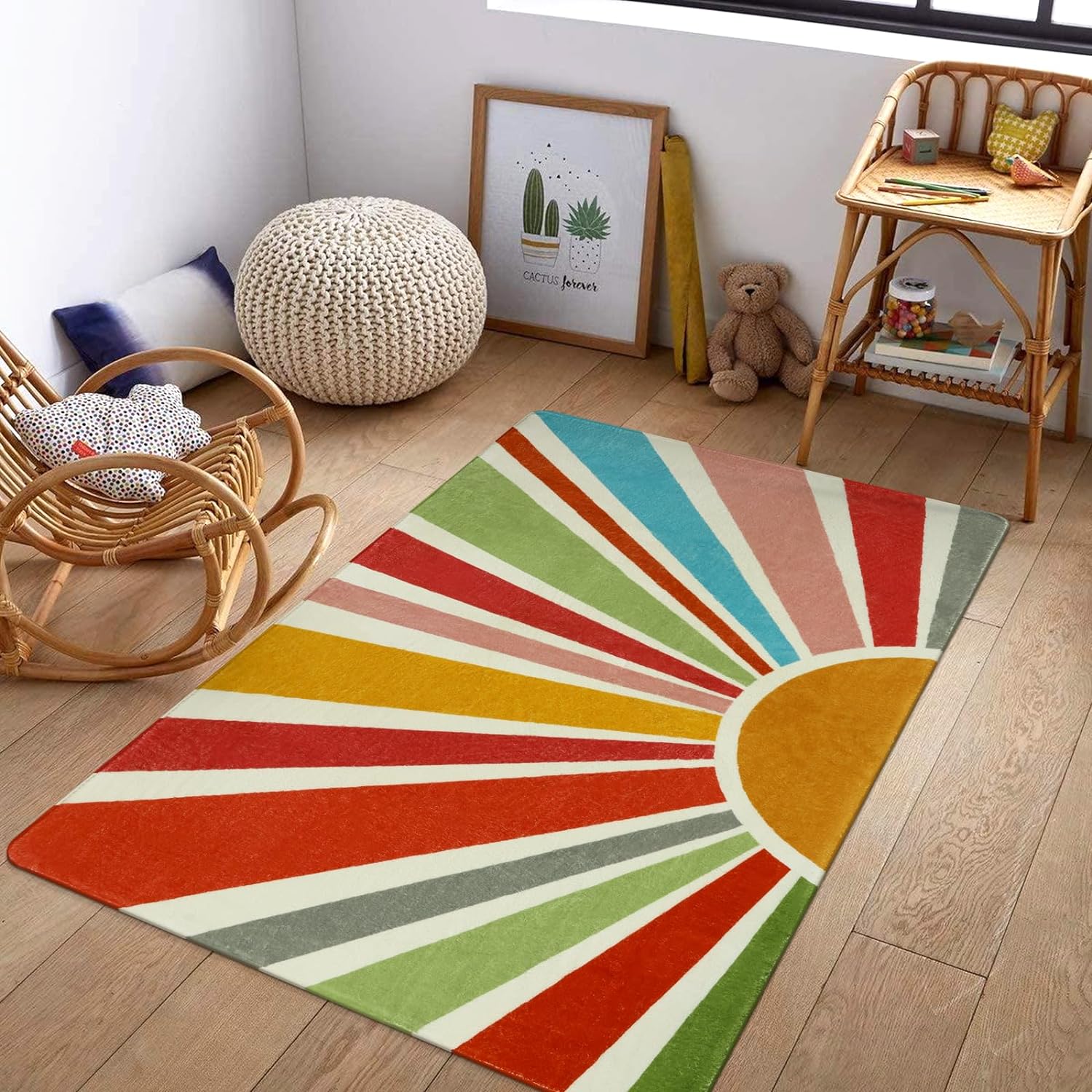 STARUIA Boho Washable Rug 3'x5' Kids Area Rug for Playroom, Colorful Kids Rugs for Bedroom, Non-Slip Throw Sun Carpet Soft Small Sunshine Rugs for Office Nursery Entryway Dorm
