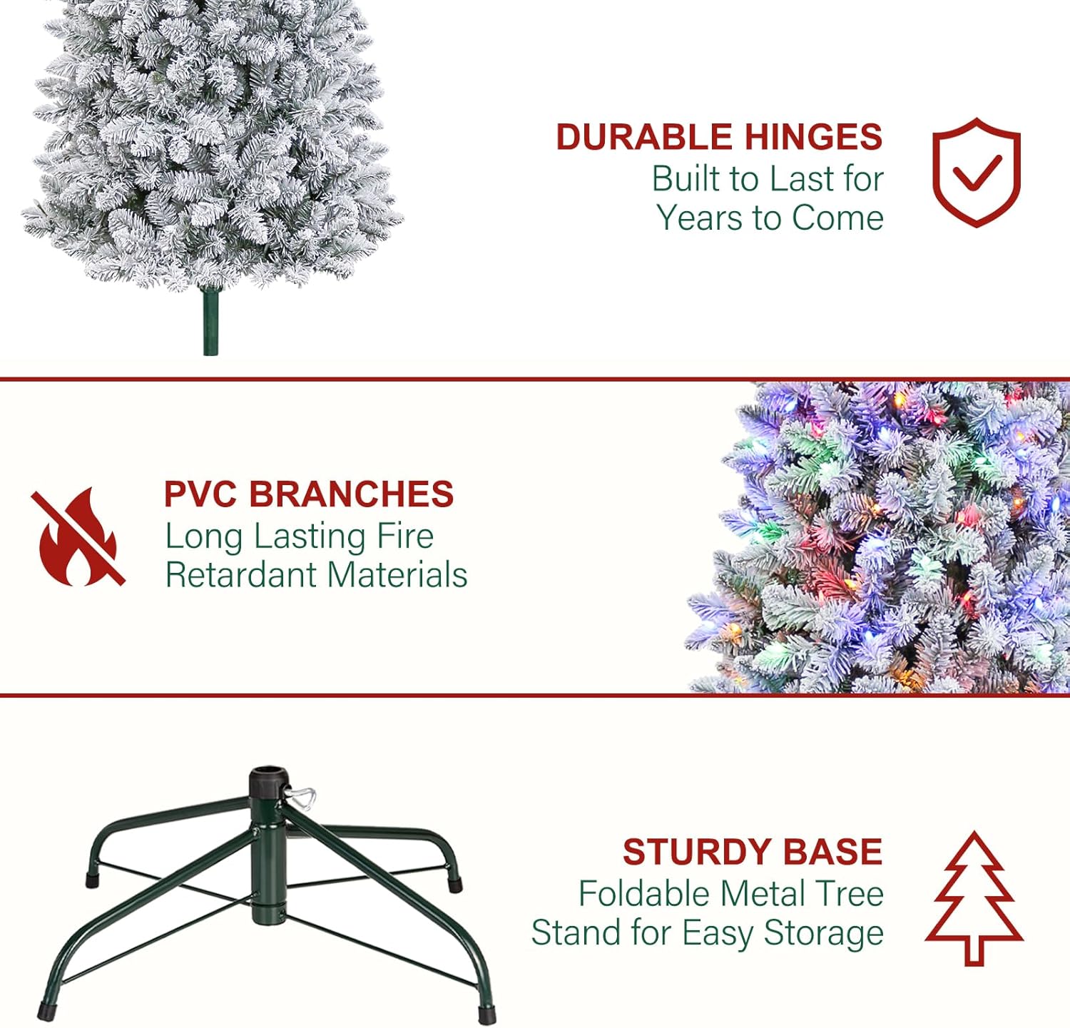 - STURDY & DURABLE: This prelit slim Christmas tree is made with metal hinges, sturdy metal tree stand, flaming retarding PVC branches and UL Listed LED bulbs, which will bring joy and holiday spirit for years to come.