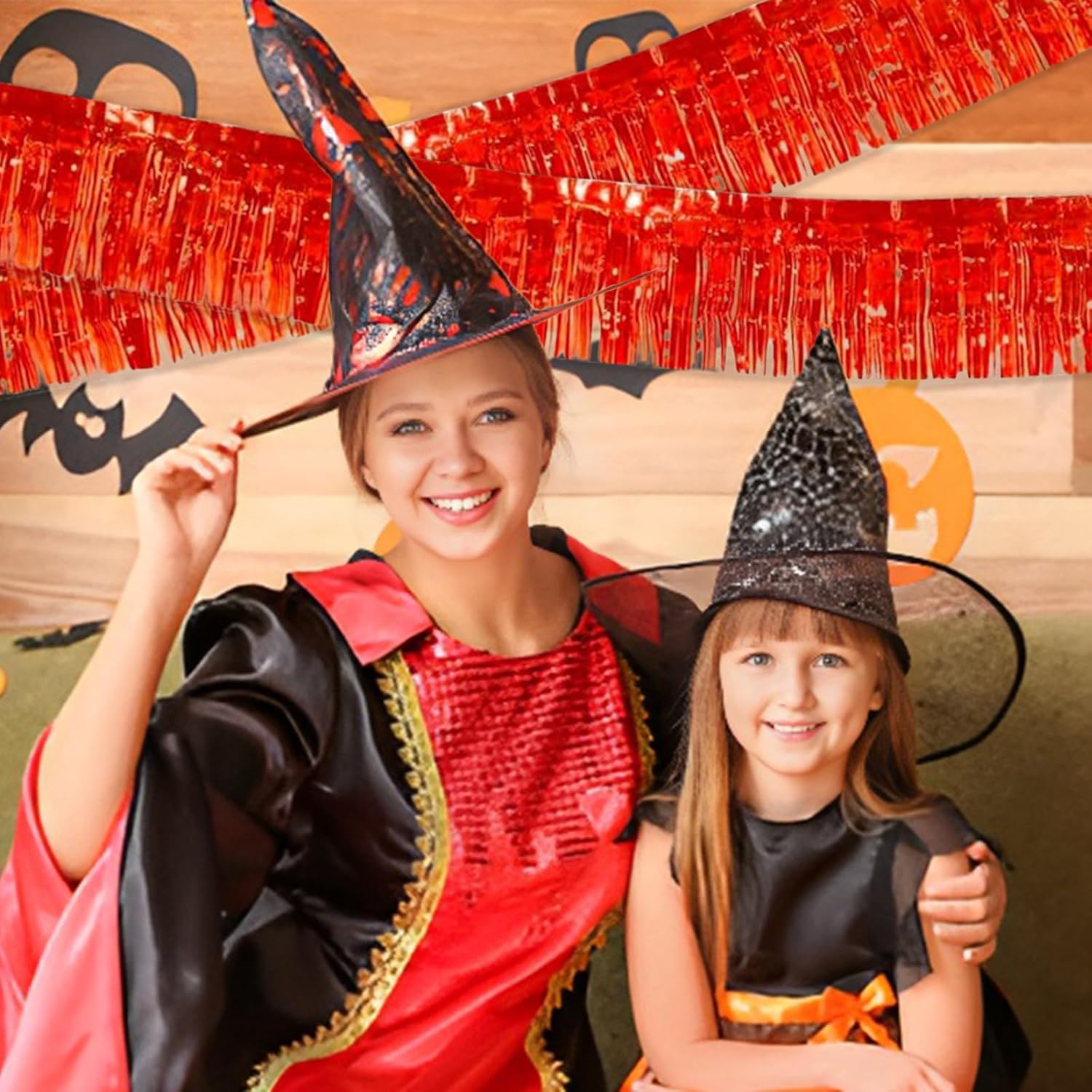 Red Foil Fringe Garland 10FT 6packs, Metallic Foil Tinsel Fringe Banners for Parade Float Decorations Wedding, Birthday Party Graduation (six Red)