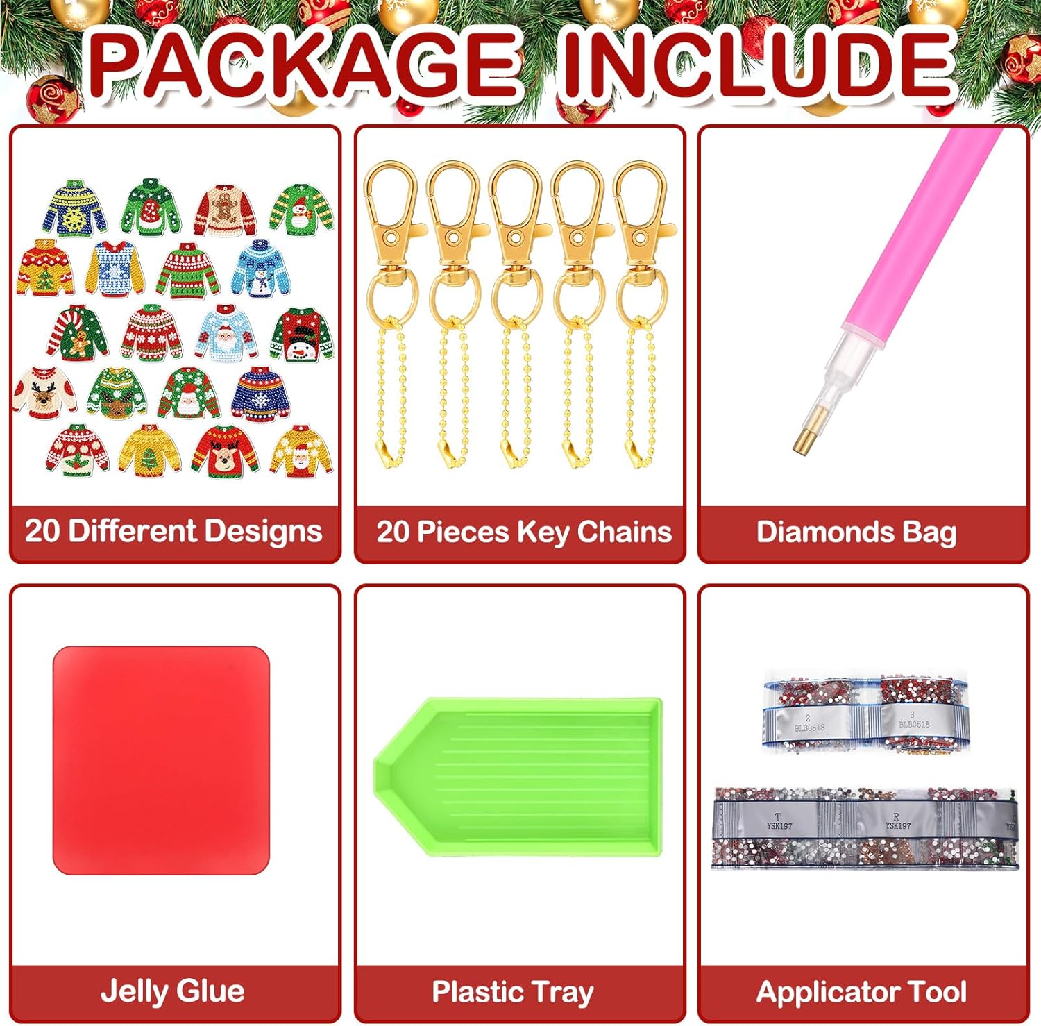 - Package Including: our package contains 20 Christmas diamond sweater painting key chains with tools, which are suitable for those who like DIY; Plenty to use for multiple projects or share with friends and family for a fun Christmas break together