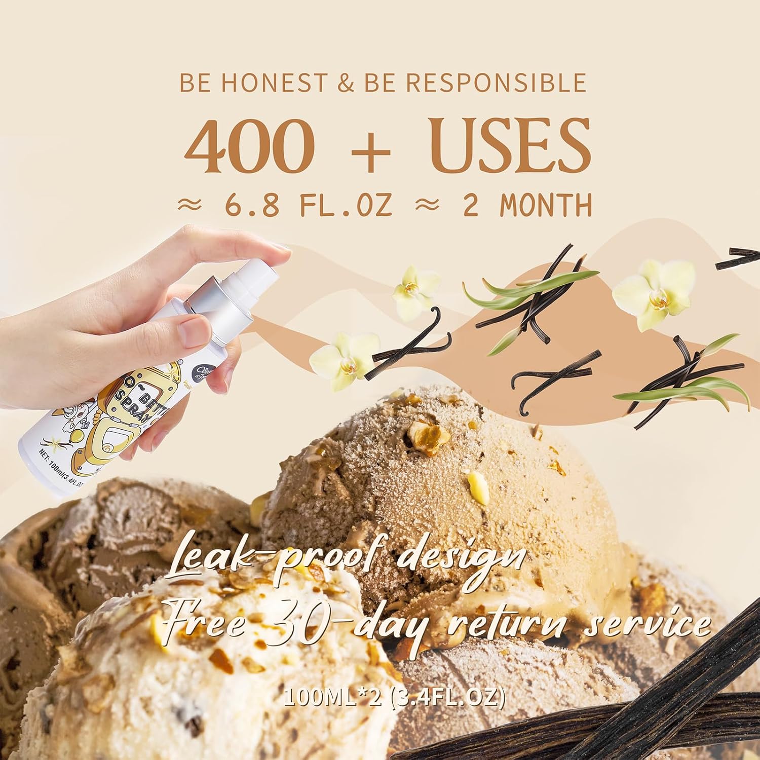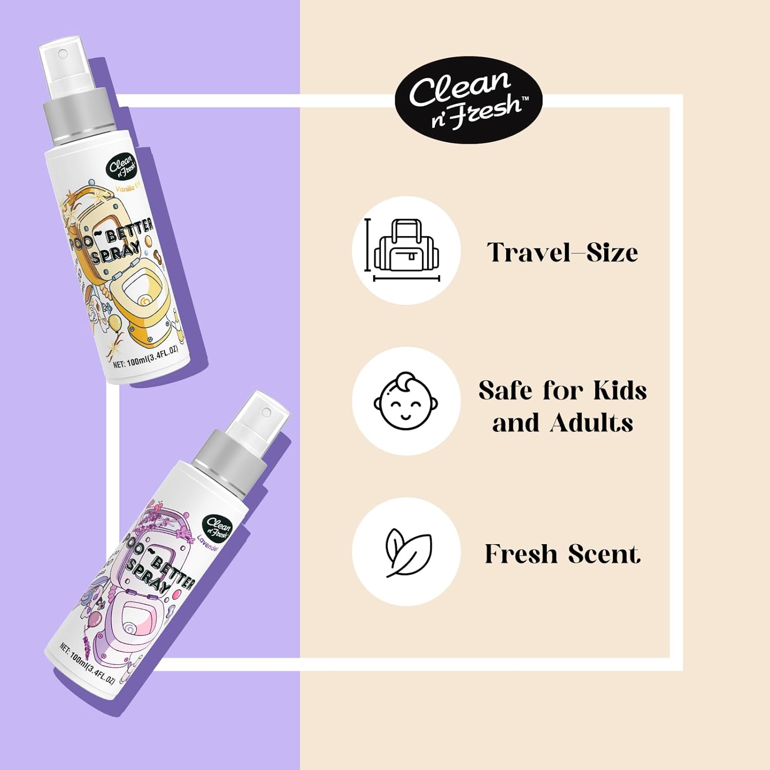 • LONG LASTING FRESHNESS: 2*3.4 FL.OZ β‰ˆ Up to 400 Uses β‰ˆ 2 Month for average poopers, all for lovely ones. Spray the surface of the toilet a few times to lock in the unpleasant smell, and no one else will ever know