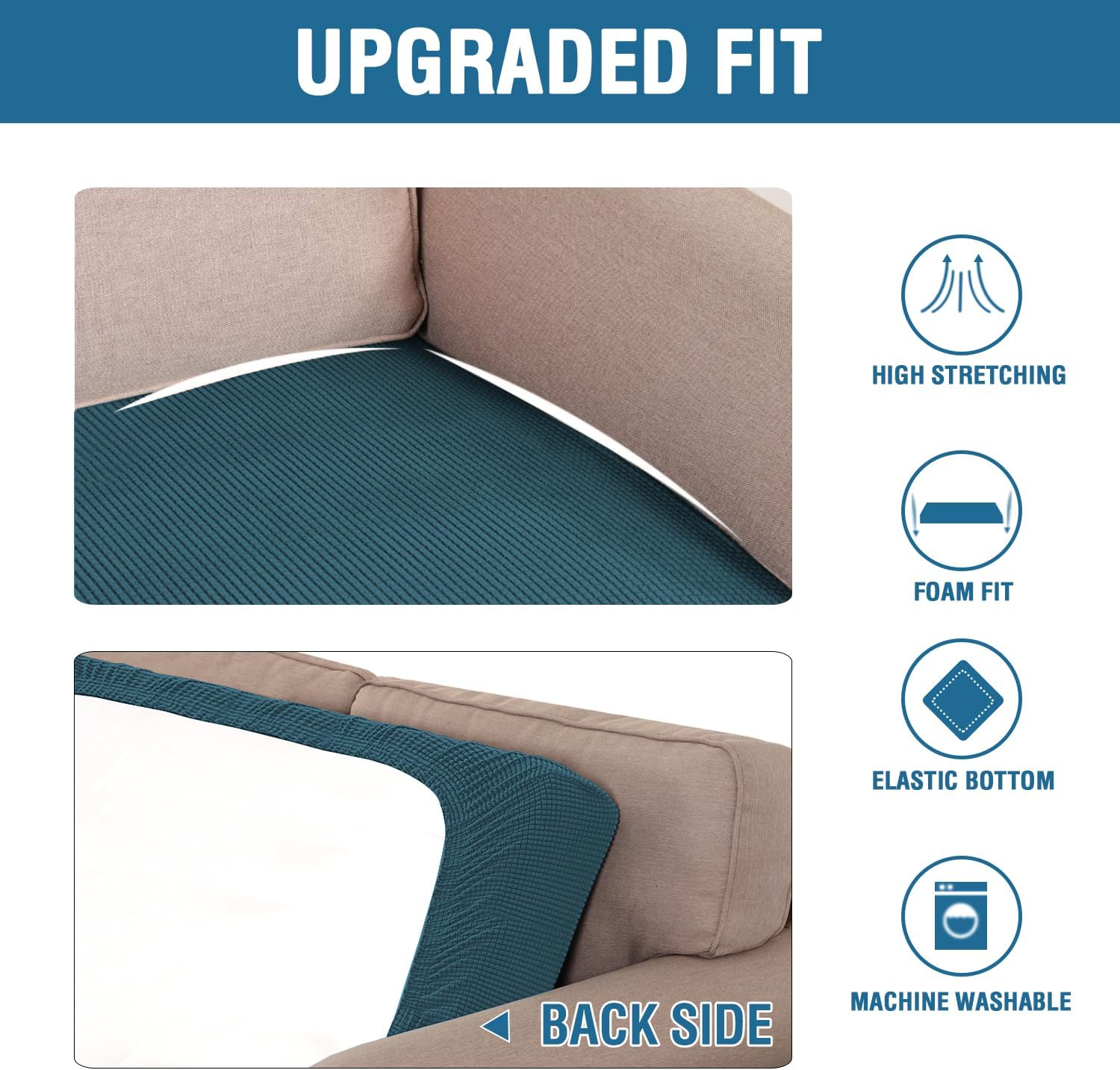 H.VERSAILTEX Super Stretch Individual Seat Cushion Covers Sofa Covers Couch Cushion Covers Slipcover Sets Thick Jacquard Textured Twill Fabric (1 Piece Chair Cushion Cover, Deep Teal)