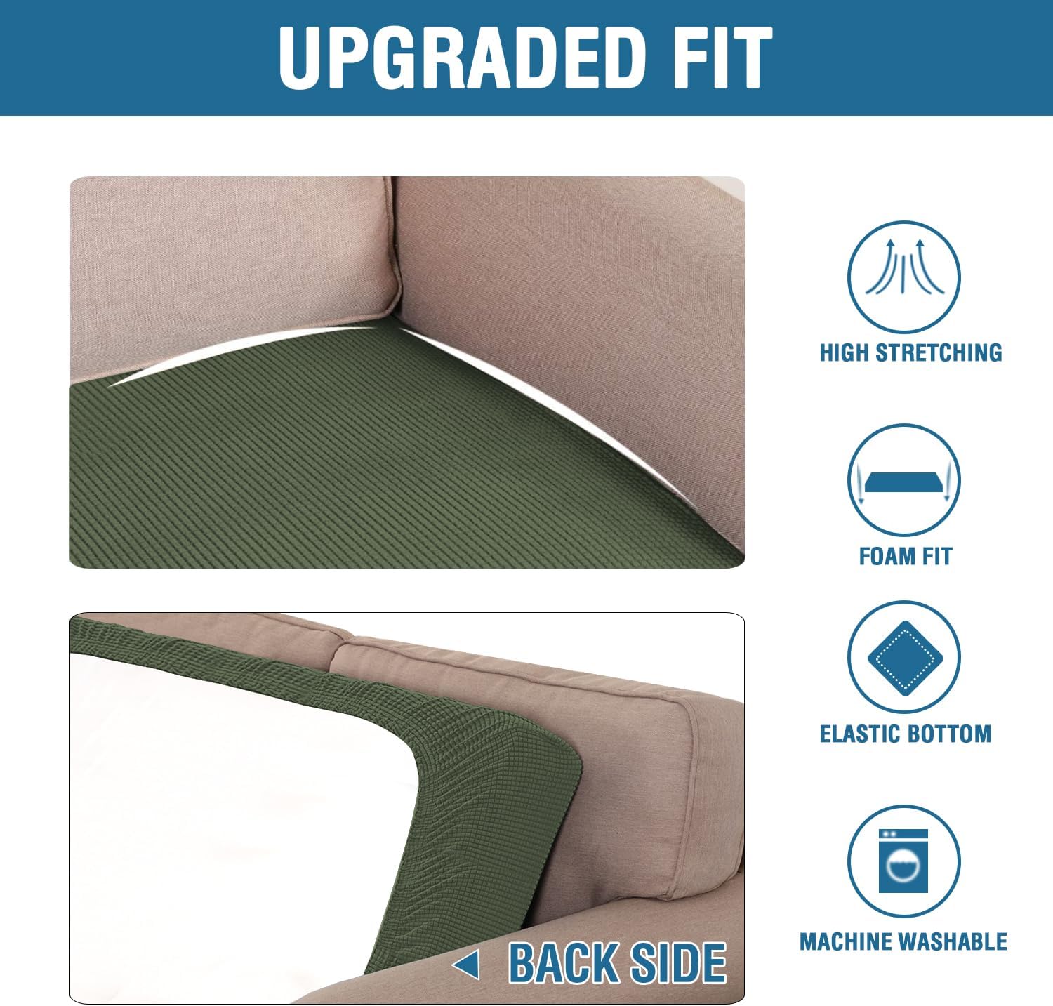 - GREAT FIT: Set of 1. This innovated cushion slipcover is crafted from durable and soft high stretch knitted jacquard fabric. Chair Seat Cover(fit total sitting area between 35-40 inches). Feature one-size-fits-most, kindly measure before ordering. Suitable for both T cushion and Box cushion styles