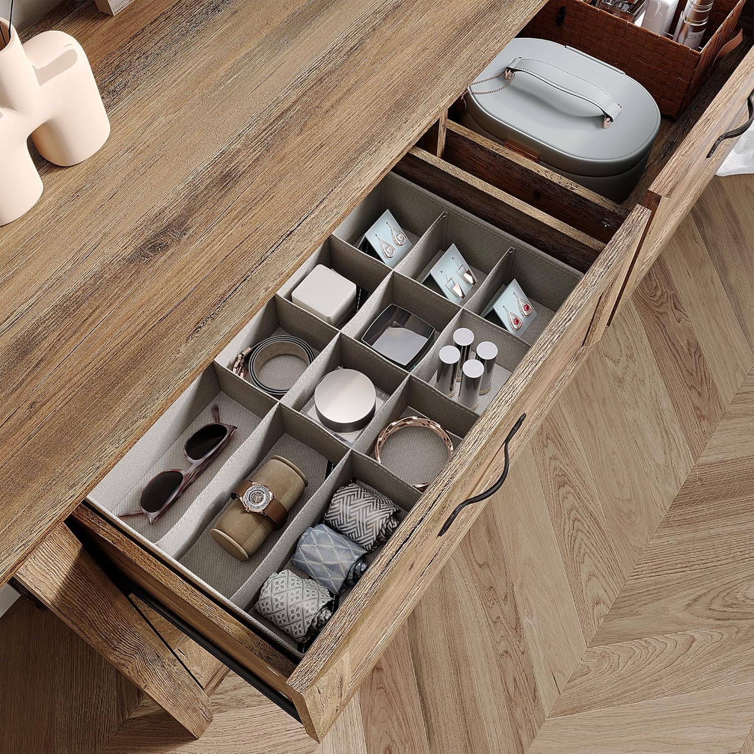 - ăPremium Materială:Made of P2 Grade Board, which is not only more cost-effective, but also environmentally sustainable. Our dresser features premium metal slides that glide smoothly and are built to last. The surface is coated with easy-to-clean and environmentally friendly paint.