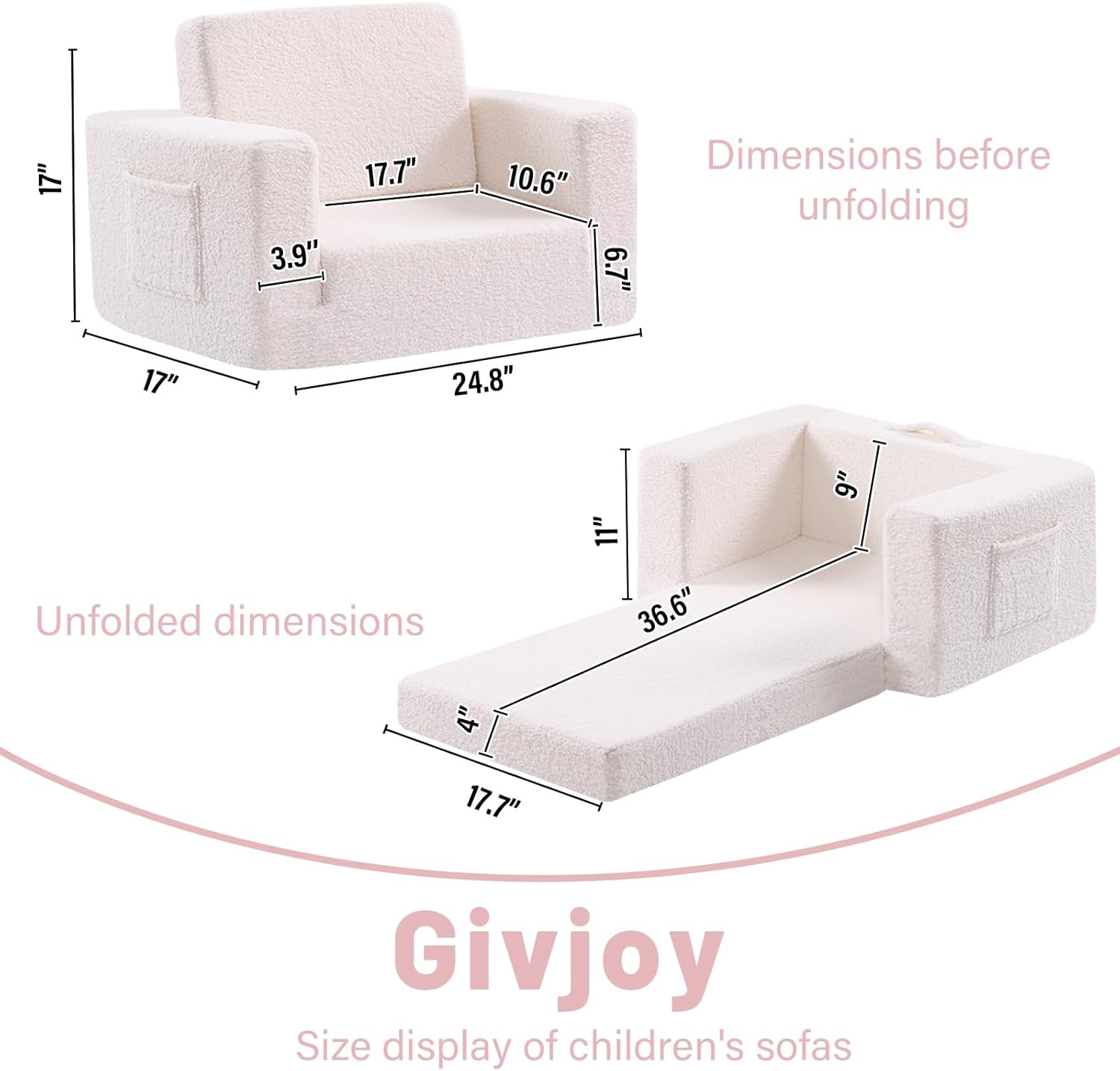 - ăSafe & Skin-friendly MaterialăThe cover of 2-in-1 kids sofa couch is made of high quality short plush which is durable and skin-friendly. High density and hardness of the supportive foam keep the sturdy toddler sofa couch in shape and provide our lovely kids all-day comfort. Its premium quality also ensures immediate expansion without needing a long wait.