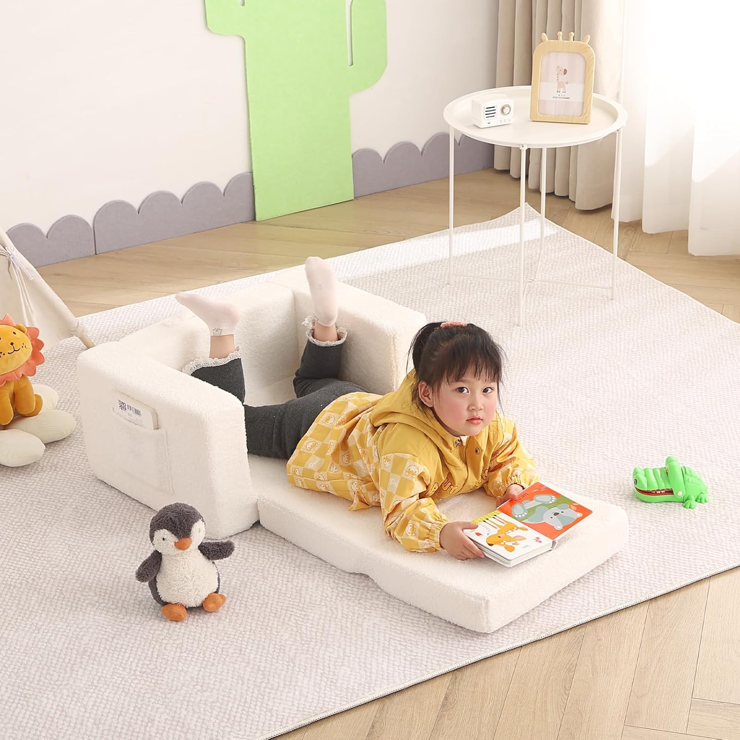 - CONVERTIBLE 2-IN-1 DESIGN: The foldable children's sofa does not take up too much space and can easily switch back and forth between traditional sofas and recliners, making it suitable for all needs. This convertible sofa is perfect for kids to read, relax, play or sleep on.