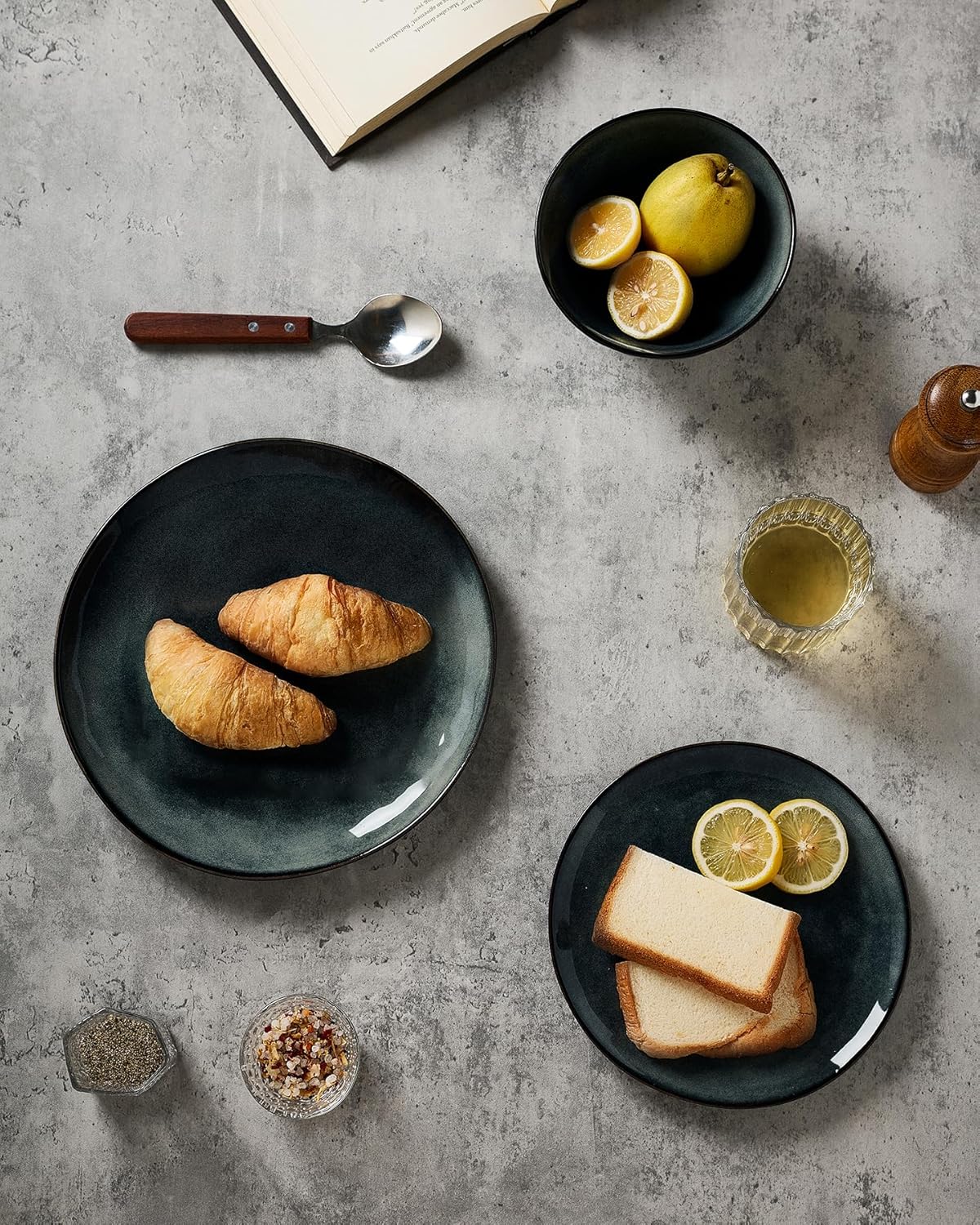 Famiware Ocean Round Plates and Bowls Set, 18 Pieces Dinnerware Sets, Dishes Set for 6, Reactive Glaze, Microwave and Dishwasher Safe, Scratch Resistant, Deep Forest