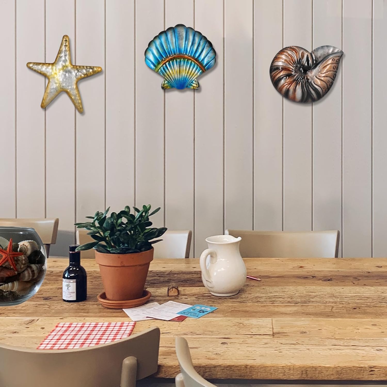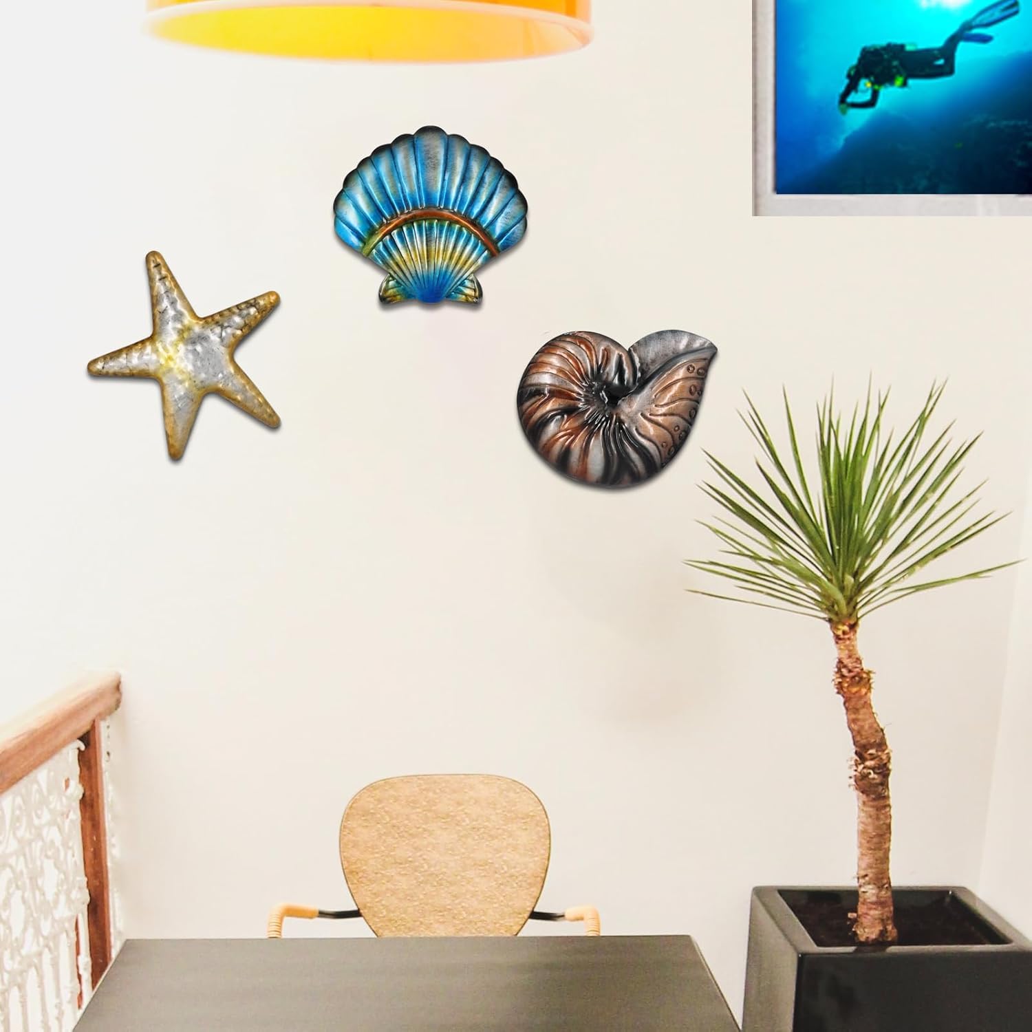 Metal Ocean Wall Sculptures Outdoor Metal Sea Star Conch Wall Art Decor Pool Garden Patio Bathroom Yard Farmhouse Fence Deck
