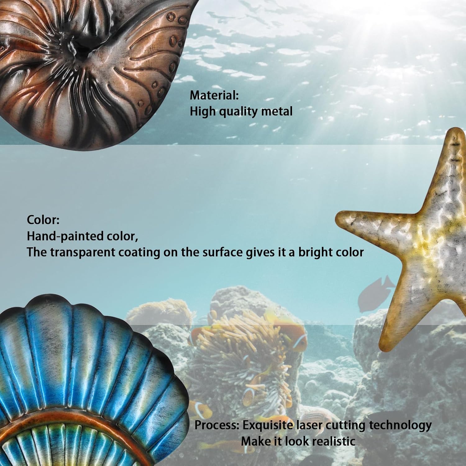 • Metal conch, starfish, and seashell ocean decorations, with exquisite appearance and realistic design, allow you to feel the ocean atmosphere in your home environment and bring you a happy mood.
