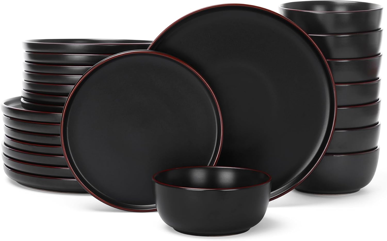 Famiware Mercury 24 Pieces Dinnerware Sets, Plates and Bowls Sets for 8, Microwave and Dishwasher Safe Dish Set, Black