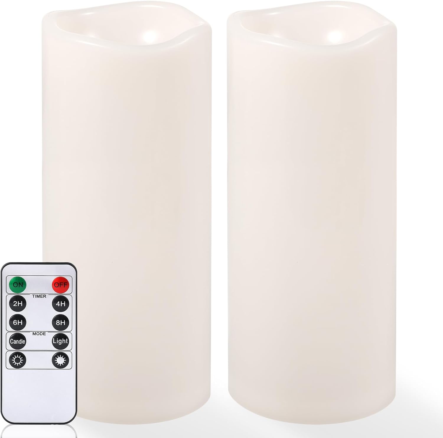 - EASY TO CONTROL WITH REMOTE: Easily turn ON/OFF your timer candles with the switch on the bottom. The Remote Control offers timer options of 2H/4H/6H/8H, saving the trouble of manual operation. Enjoy automatic lighting at the same time every day. Customize light modes (flicker or steady glow) and brightness level to suit your preferences