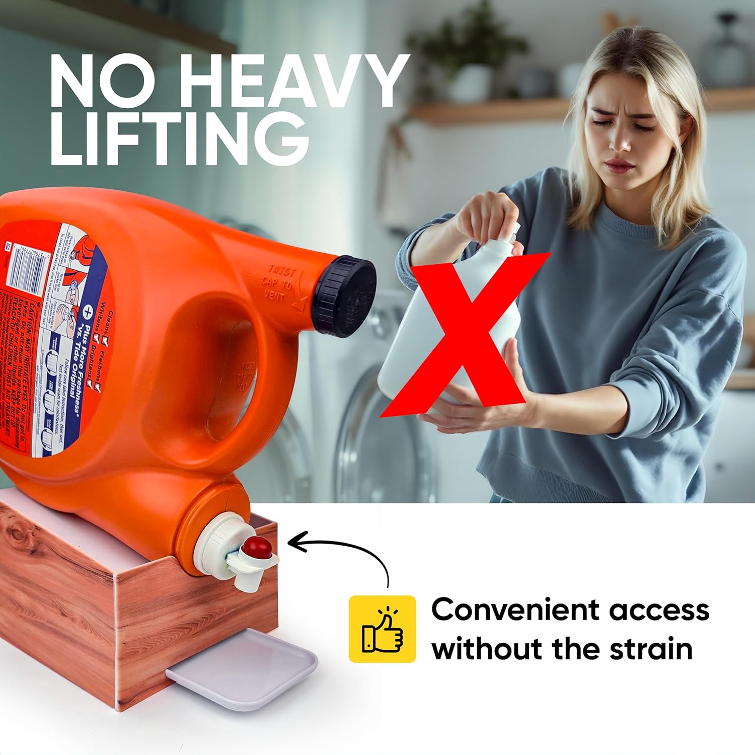 - [A LITTLE REMINDER] - This item is a Laundry Detergent Stand ONLY that does not include any Detergent or Bottles or Velcro Straps to handle the bottles but it is incredibly useful without the straps because of the angled feature which holds bottles in place when standing alone