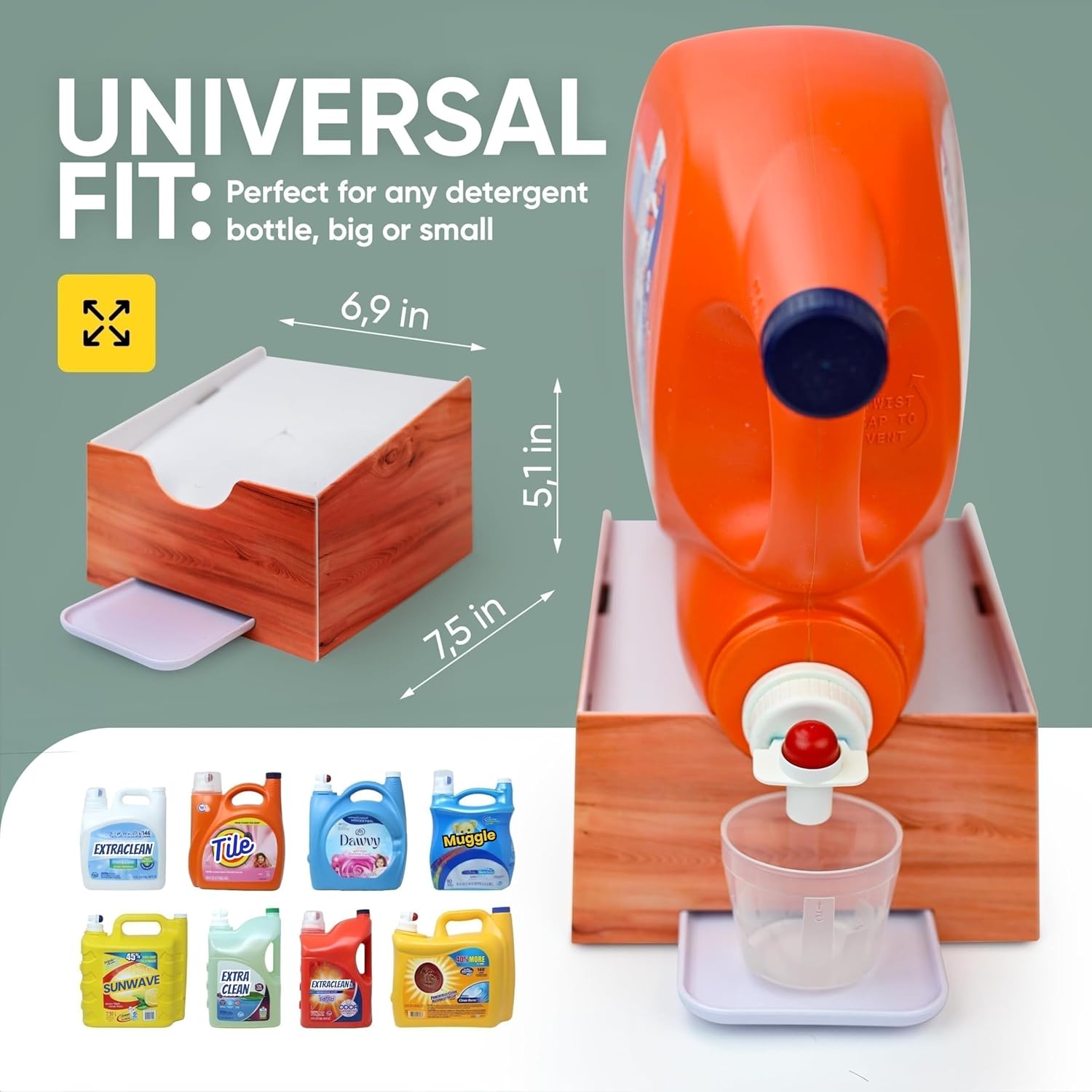 - Patents Pending Angled laundry detergent drip catcher, no need to tilt or lift the bottle. Downward slope makes soap pour out easily
